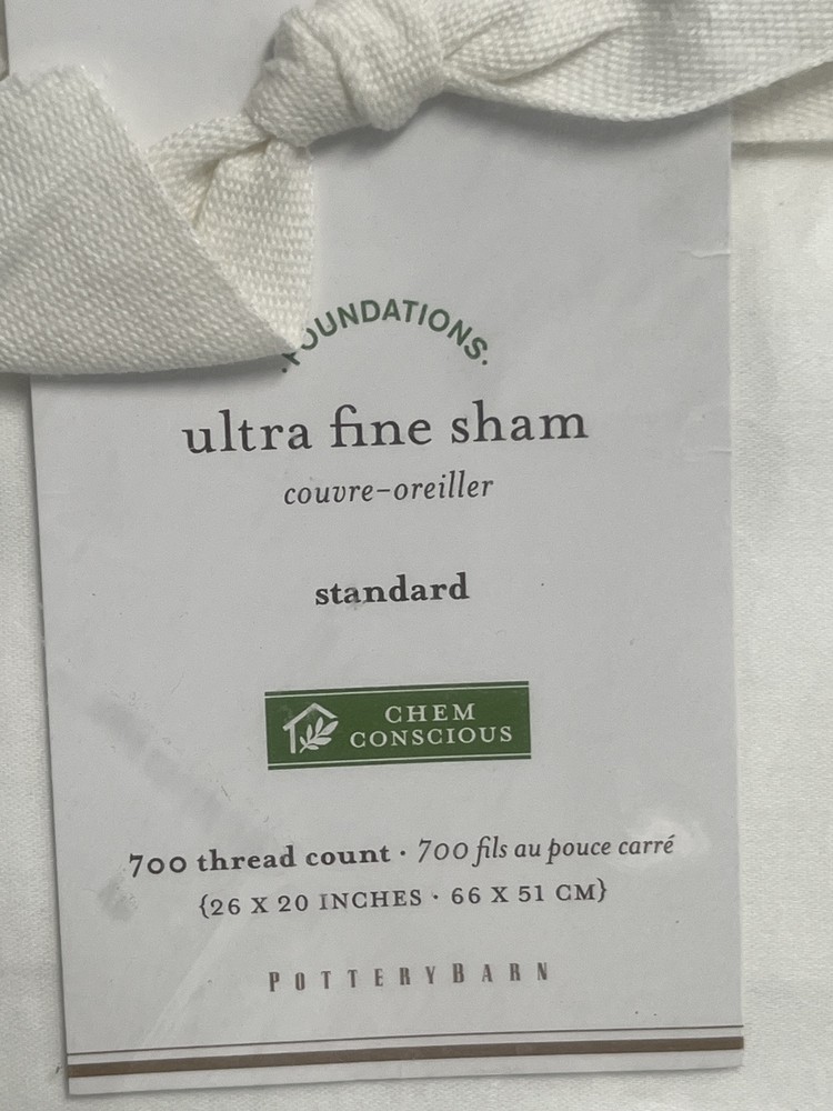 This is a Pottery Barn Pillow Sham in a standard size of 26 x 20 inches. It is made of white 700 thread count ultra-fine sateen material, perfect for adding luxury and comfort to any bedroom. With its rectangular shape, this brand new sham is an elegant addition to your bedding collection, designed to enhance the overall look and feel of your bedroom decor.