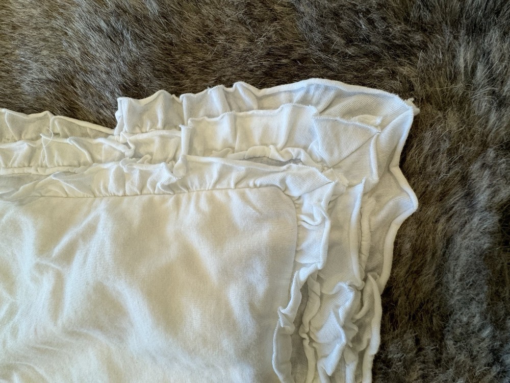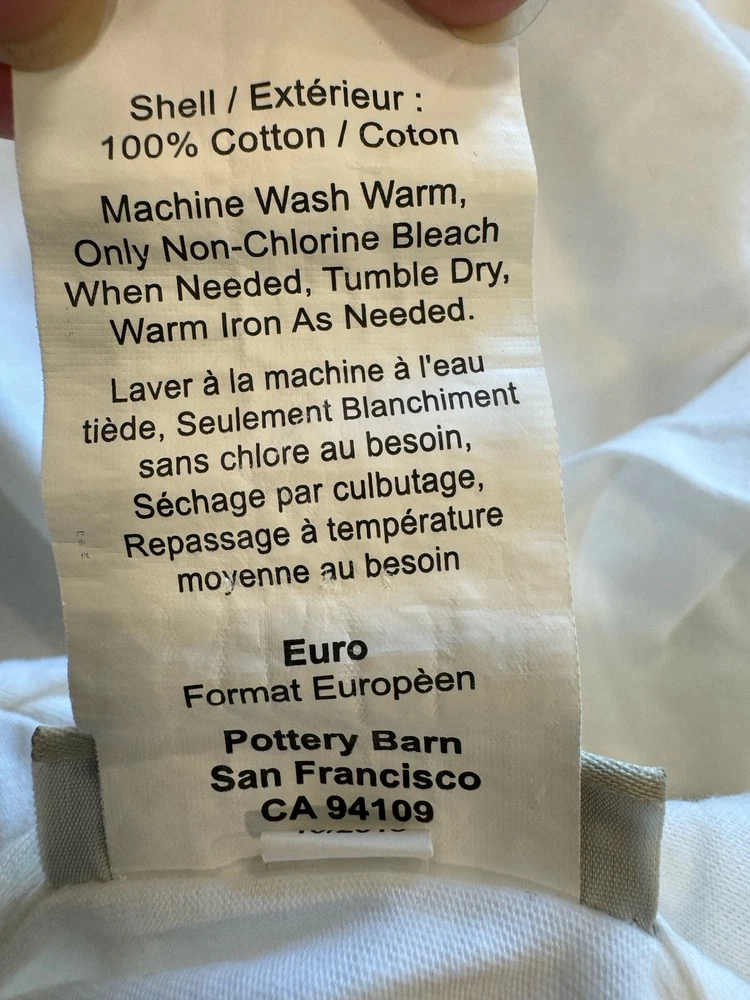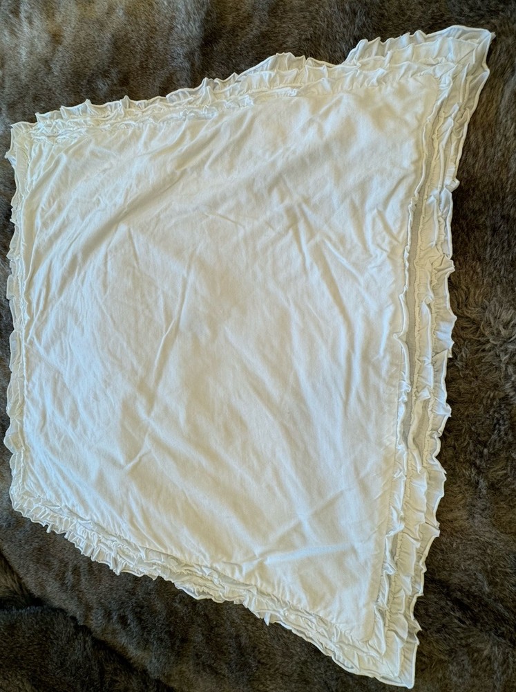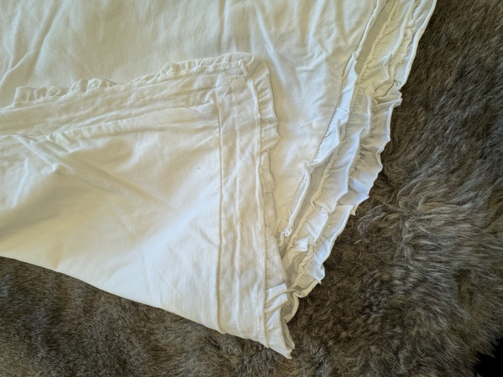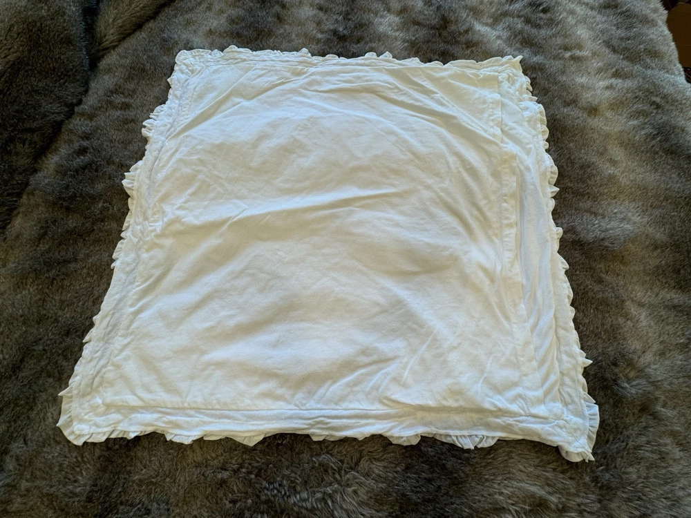Gorgeous Pottery Barn White Cotton/Lindn blend Pillow Sham with back flap enclosure & pleated ruffle trim around pillow. . Extra large size! ( Size is 26”x26”This sham is good condition