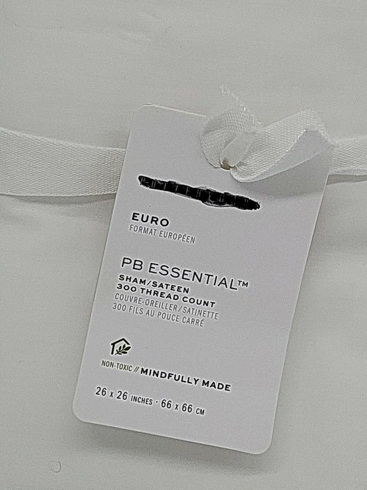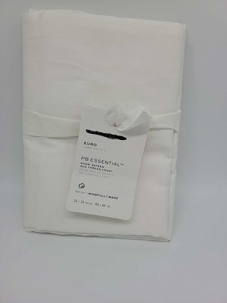 Pottery Barn White Essential 300-Thread Count Sateen Sham, Euro....