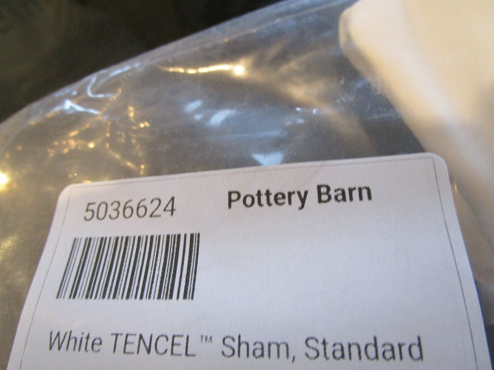 Up for auction is - Pottery Barn White TENCEL Sham Standard New w tag PET AND SMOKE FREE