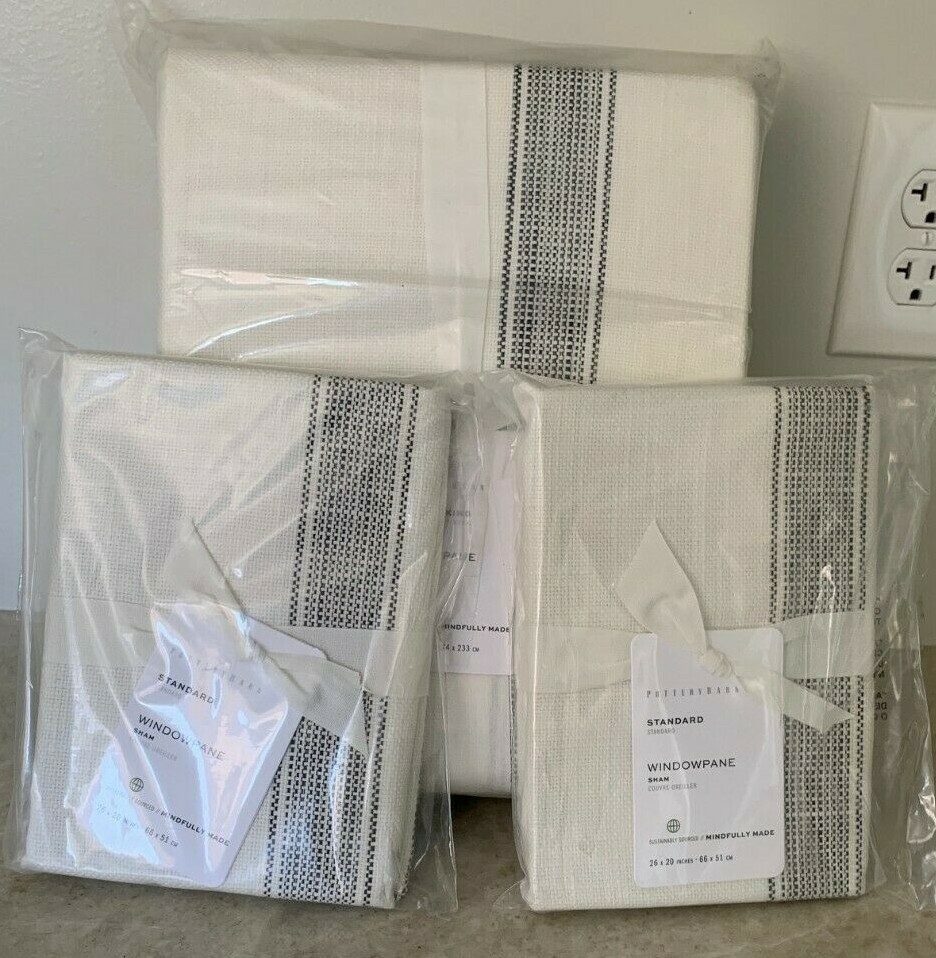 This is a new Pottery Barn Windowpane Cotton KING duvet cover and 2 standard shams! Brand new with tags! GORGEOUS! PB describes, " Check all the style boxes with our windowpane-patterned bedding. Its versatile tattersall design looks crisp and modern when layered atop solid-colored sheets, but also mixes easily with repetitive prints or ticking stripes for an appealing contrast of visual textures. Made from 100% cotton. Duvet and sham reverse to solid snow white. Duvet features a hidden button closure with inner ties that keep insert in place; sham features an envelope closure. Machine wash." It is stored in my smoke/pet free home. Please feel free to contact me with any questions you might have. My feedback is very important to me. Please contact me before negative feedback is left, I pride myself in being an easy person to work with. Thanks :) I am in no way associated with Williams-Sonoma Inc.