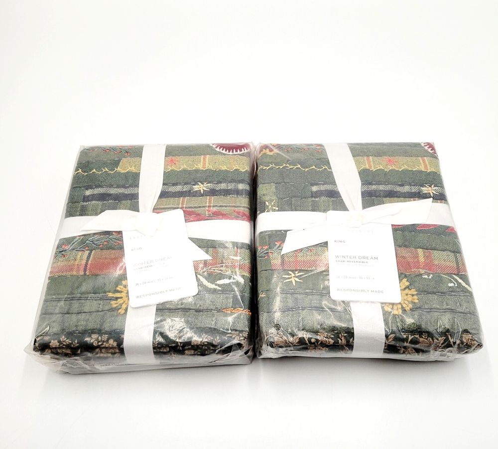 Pottery Barn Winter Dreams Handcrafted Reversible King Shams Christmas Set of 2 King Shams Measure: 20" x 36" Hand Quilted of 100% Cotton Filled with 100% Polyester Batting Reverses to C oordinating Floral Pattern For Two Looks in One. Zipper Closure Machine Wash Brand New in Original Packaging . Thank you for visiting. Please see my other items. Shipping shown is only for the lower 48 states. Buyers in Alaska, Hawaii, Puerto Rico & VI please contact me for a shipping quote.