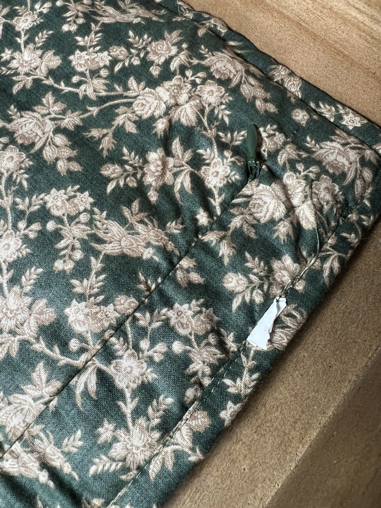 Material: Made from 100% cotton with 100% polyester batting. Reversible Design: Reverses to a coordinating floral pattern for two looks in one. Secure Design: Shams have a zipper closure. Consumer tag removed New never used