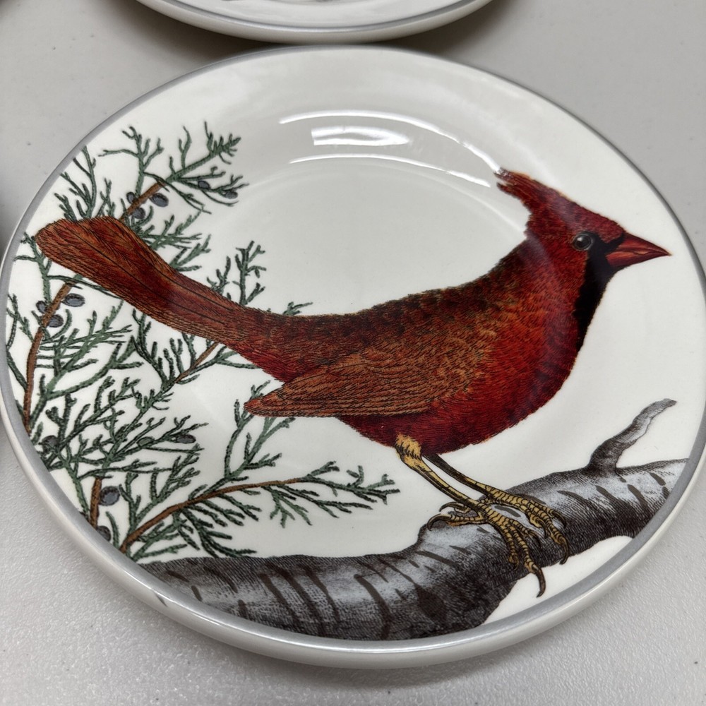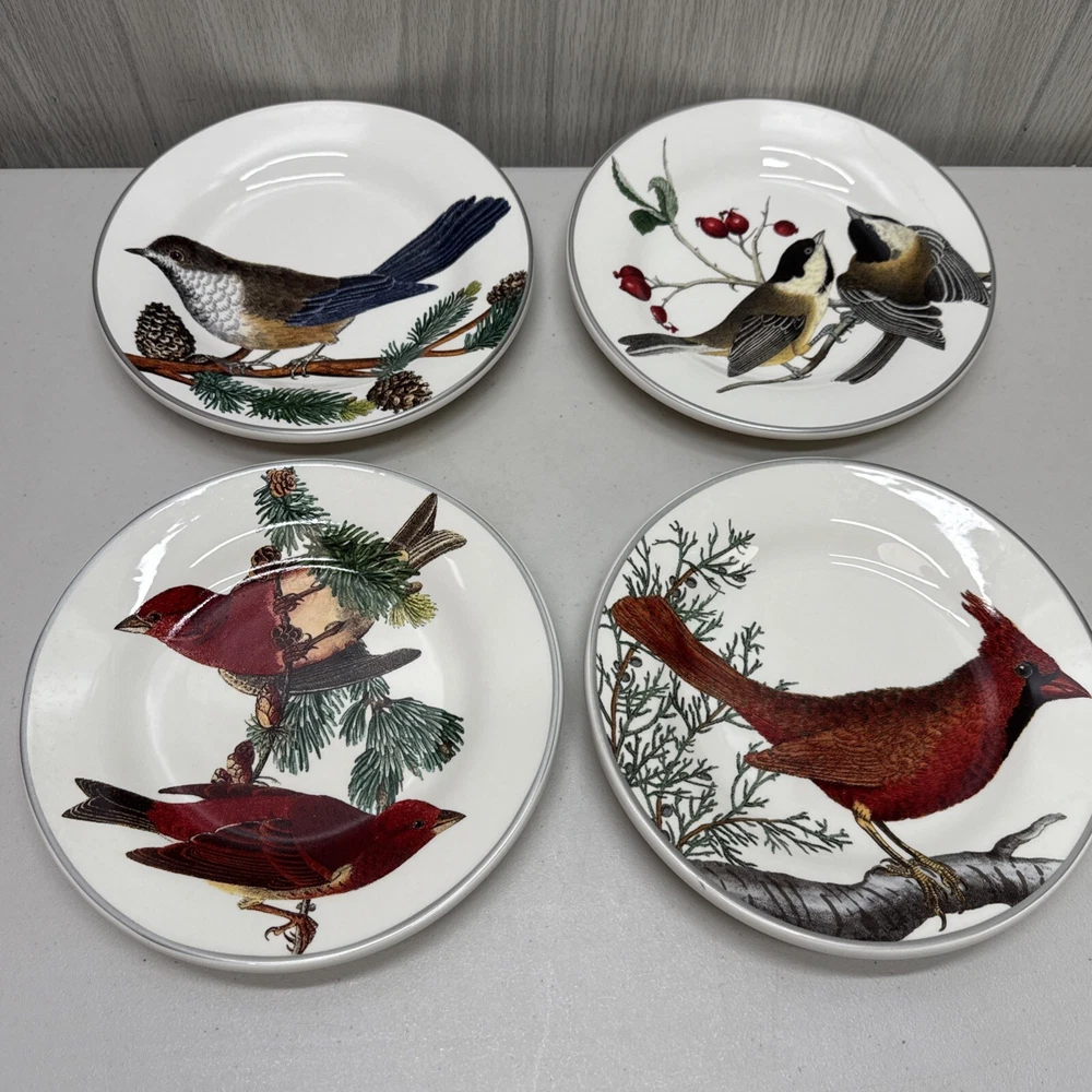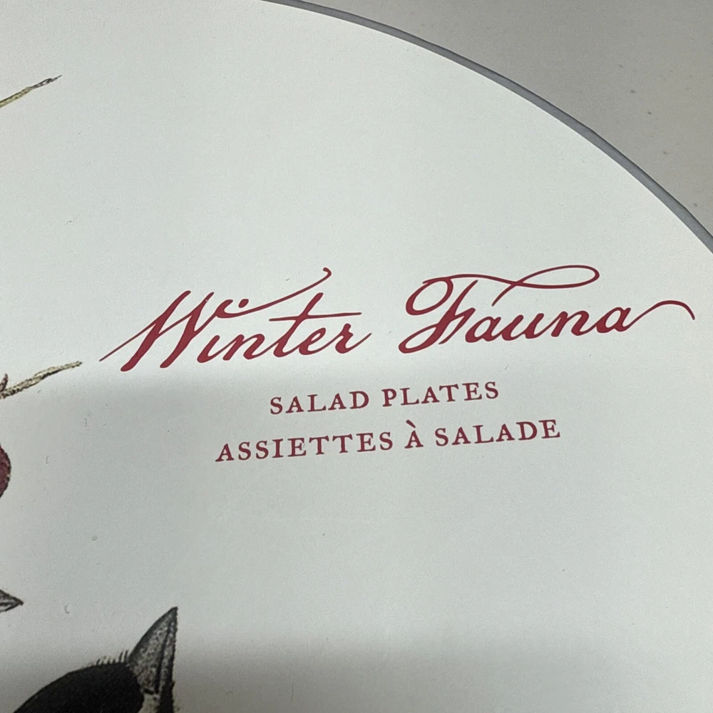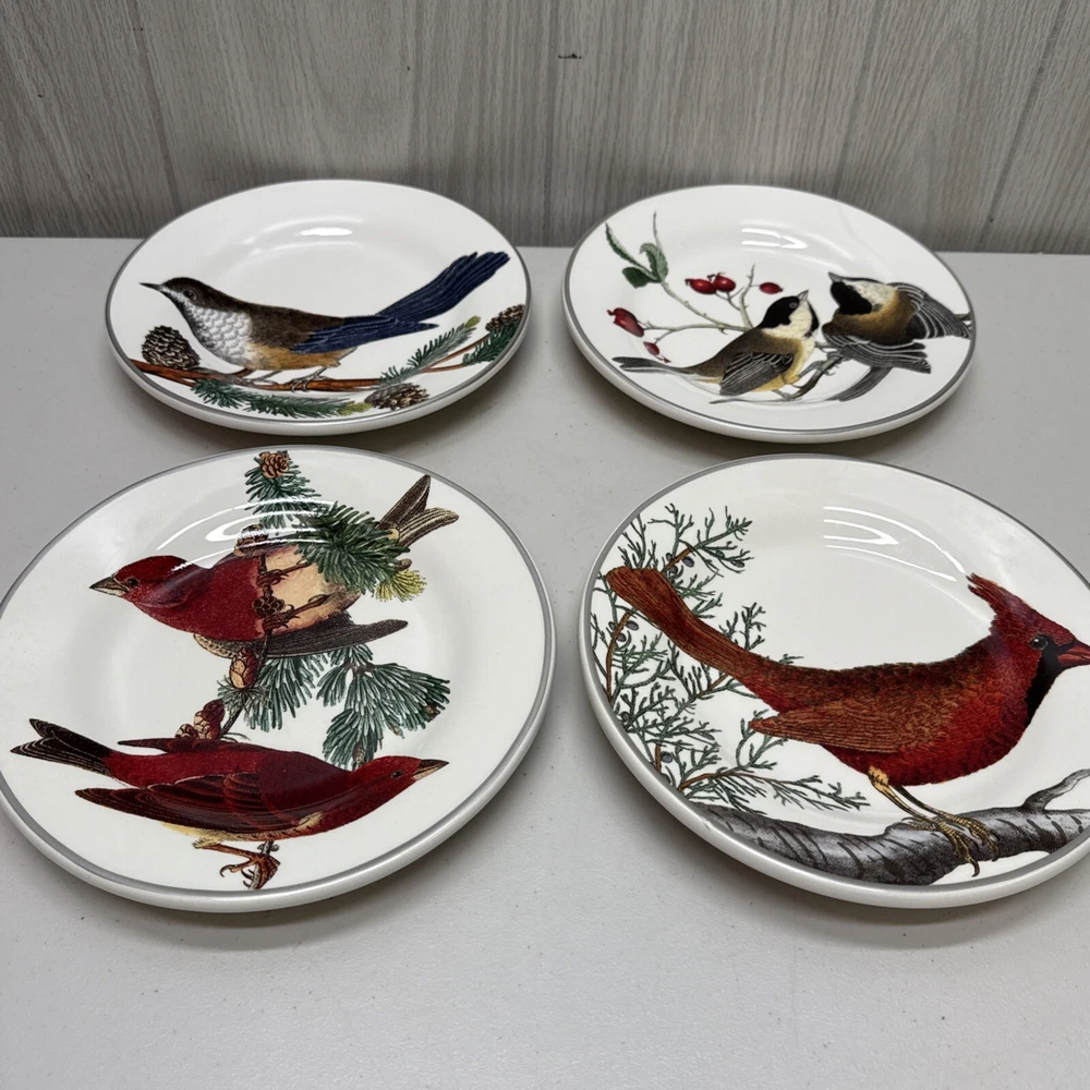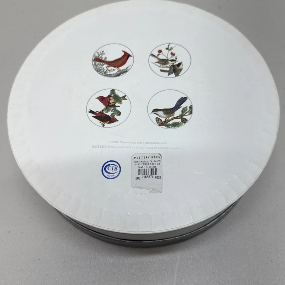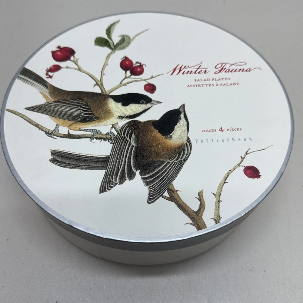 Pottery Barn Winter Fauna 8.75" Salad Plates Stoneware Birds 4 Plates...