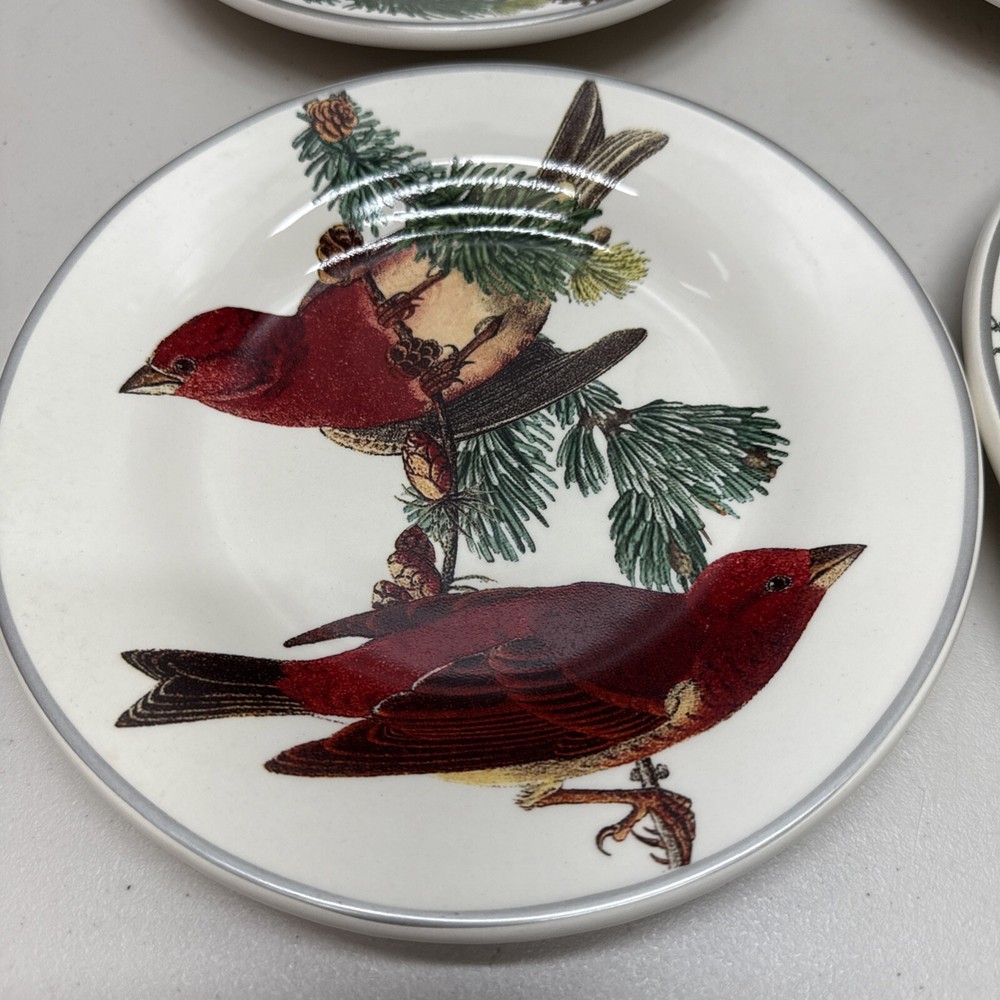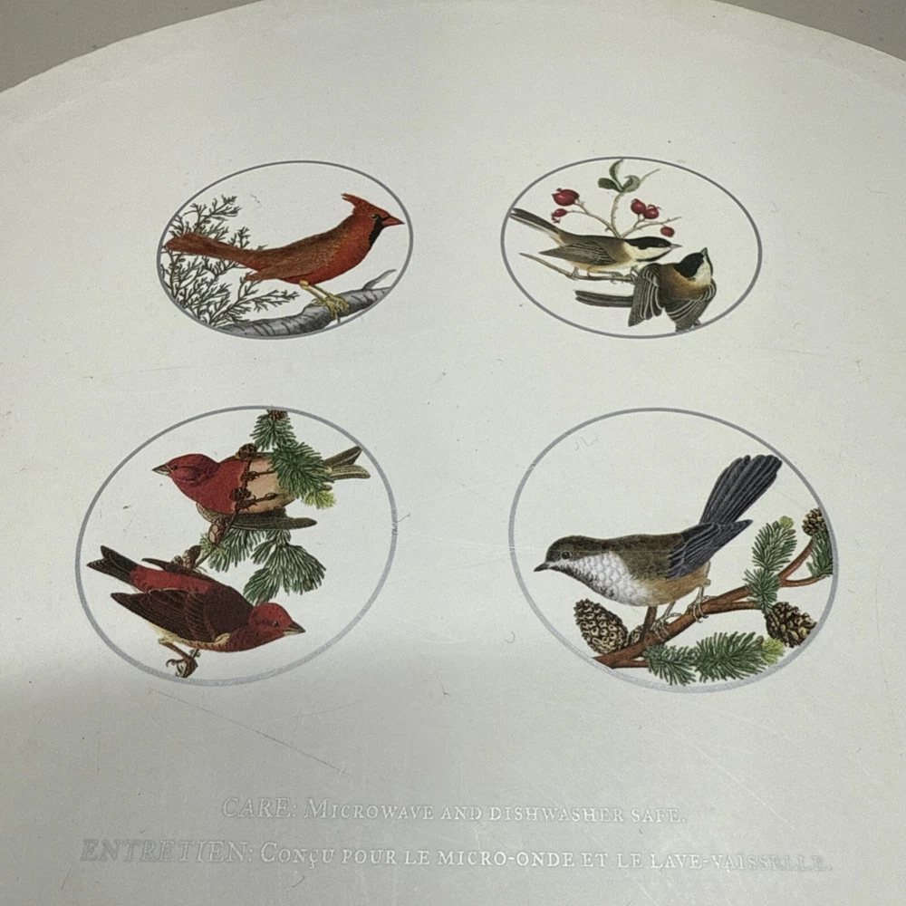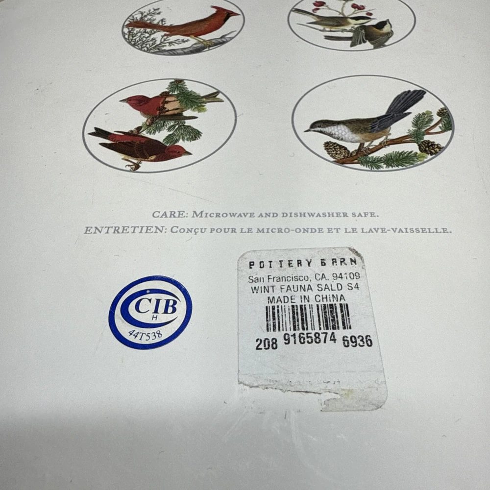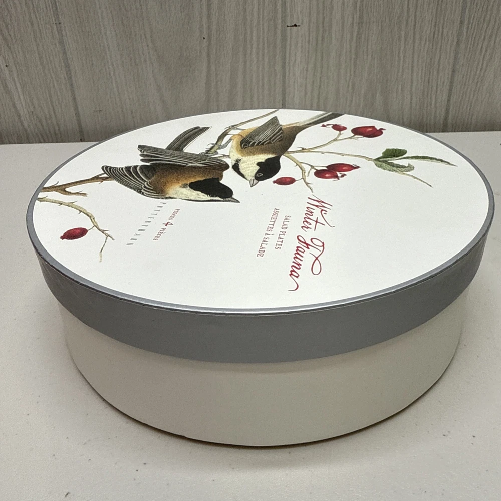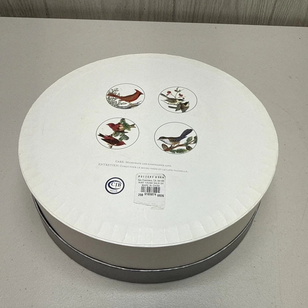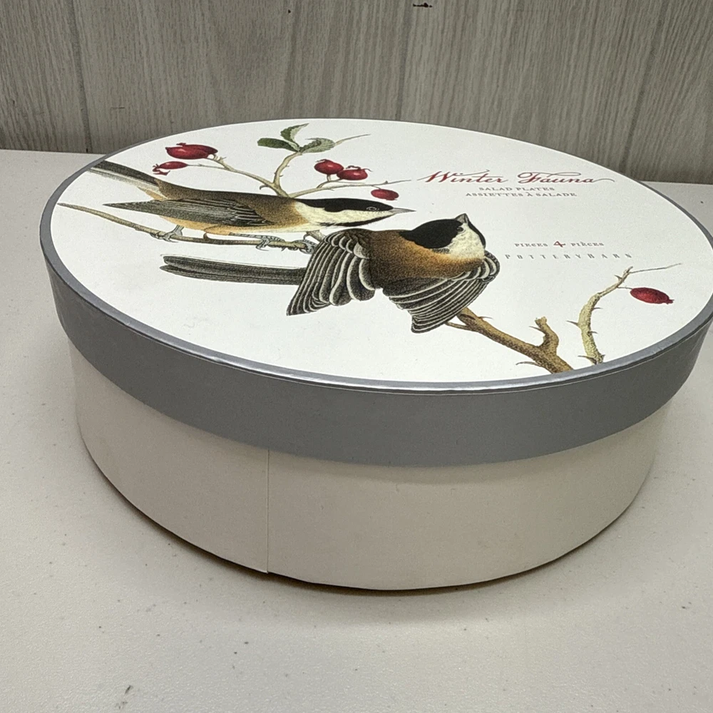 Pottery Barn Winter Fauna 8.75" Salad Plates Stoneware Birds 4 Plates...