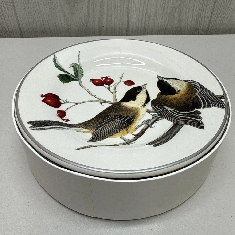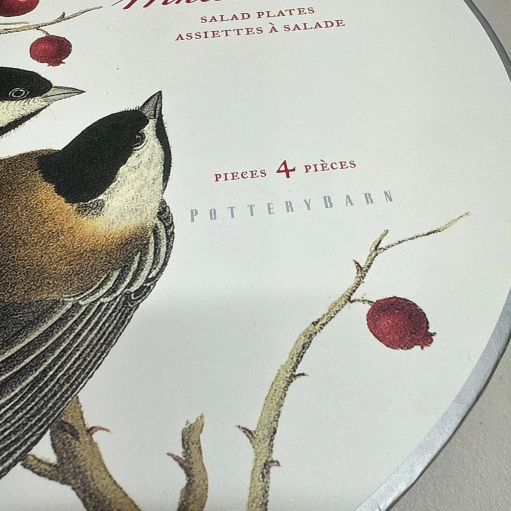 Pottery Barn Winter Fauna 8.75" Salad Plates Stoneware Birds 4 Plates