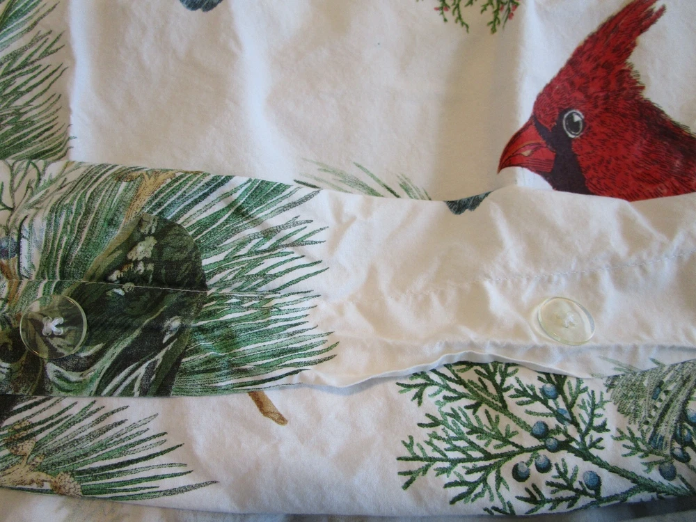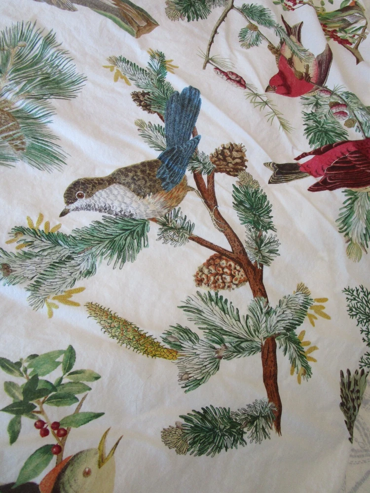 Adorn your bedroom with the cozy and colorful Pottery Barn Winter Fauna Full/Queen Duvet Cover with button closure. Featuring a charming bird motif set against a white backdrop, this duvet cover brings a touch of avian elegance to your sleeping space. Crafted from 100% cotton, it promises breathability and comfort throughout the night. The rectangular shape ensures a snug fit for a full/queen-sized bed, while corner ties keep the duvet securely in place. Machine washable and tumble dry friendly, this duvet cover combines convenience with style. The design is a perfect harmony of functionality and the timeless beauty of nature, making it a delightful addition to any bedroom decor. This pattern came out in 2015. In very nice condition with no rips or tears or stains or odors. Buttons are intact. Please view the photos as they are part of the description. Packaged and shipped with care.
