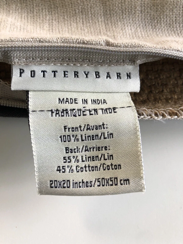 This Pottery Barn pillow cover is a great find! The brown linen with black piping looks elegant, and the tan cotton backing adds durability. It's in excellent used condition—no stains or tears, just minor wear. The zipper closure makes changing covers easy. Perfect for refreshing your living room or bedroom decor. Ships from a clean, smoke-free home. Highly recommend!