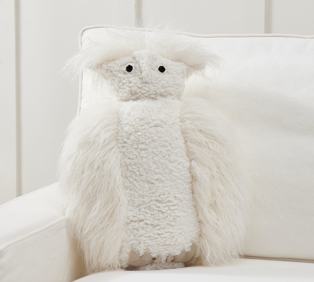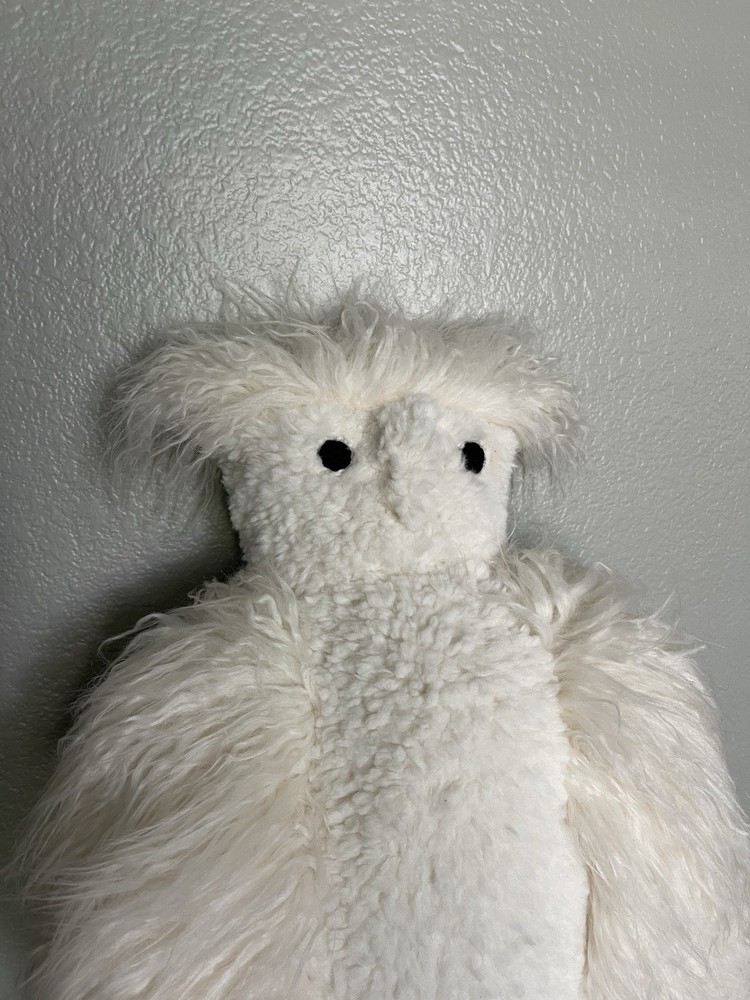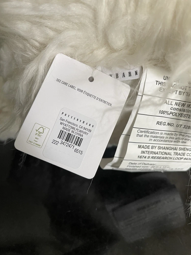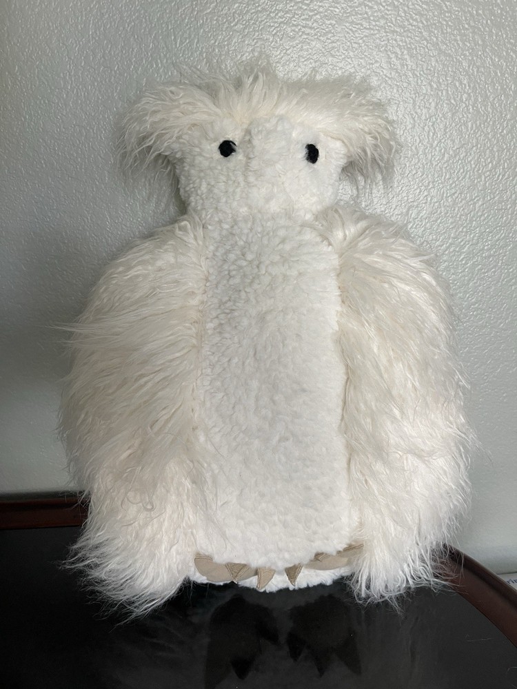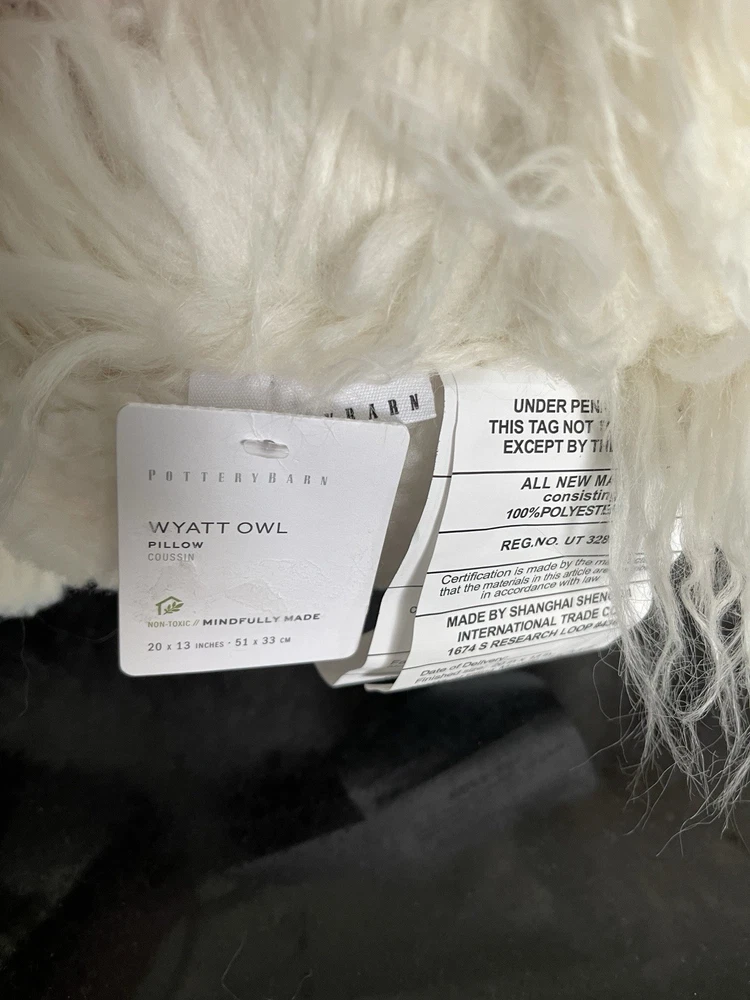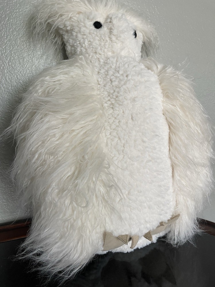 Pottery Barn’s Wyatt Owl Shaped Pillow is a wise choice for adding a touch of whimsy to your sofa or chair. Knitted of incredibly soft Mongolian faux fur and plush sherpa, this winged friend might just find a way to become a permanent houseguest after the Halloween season is over. • Sherpa fur is 100% polyester. • Mongolian faux fur is 85% modacrylic and 15% polyester. • Yarn-dyed fiber has incredibly rich color that holds its vibrancy over time. • Reverses to solid ivory. • STANDARD 100 by OEKO-TEX® Certified: WSI Certificate #: 14.HUS.42449 HOHENSTEIN HTTI: tested for 400+ harmful substances to keep you and your family safe from chemicals common to textile manufacturing. • Sewn closed; polyester fill. • Spot clean. • Imported. New, with tags. Please see photos for details regarding condition.