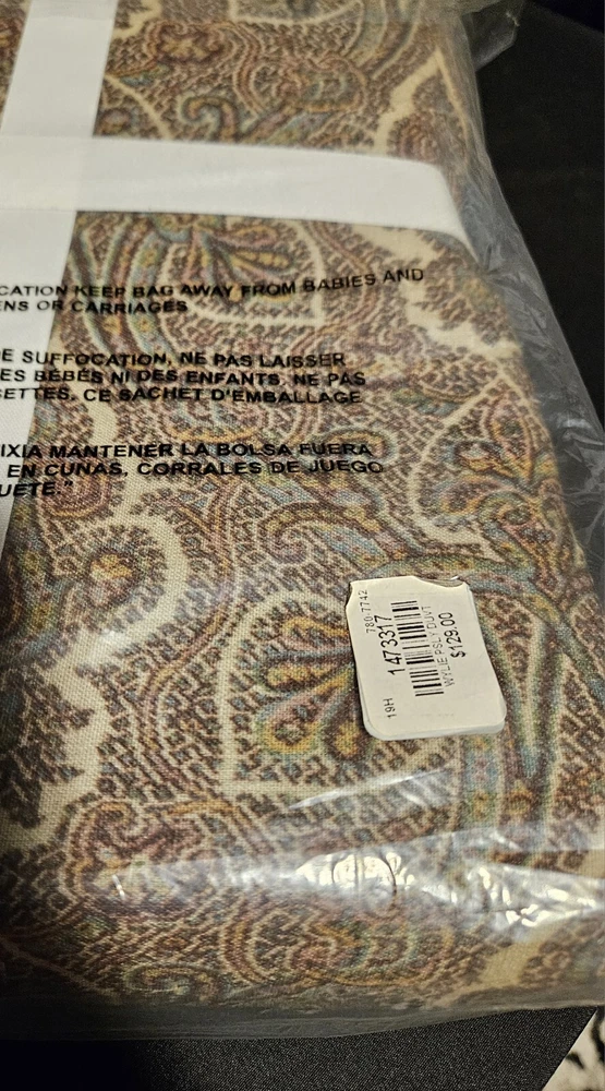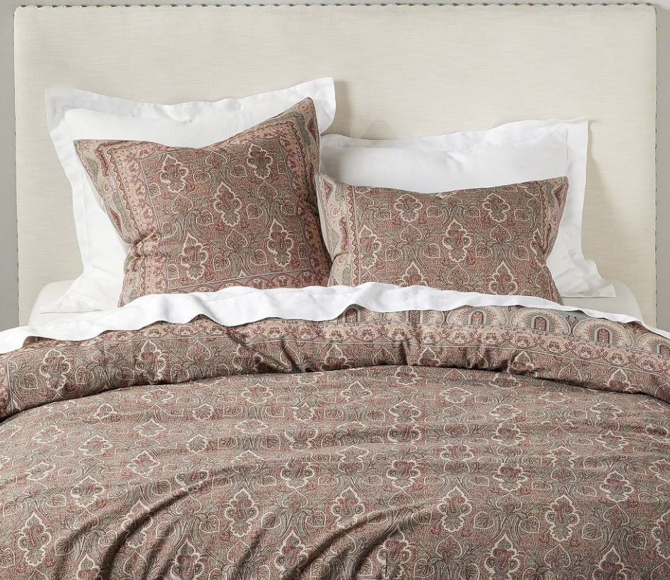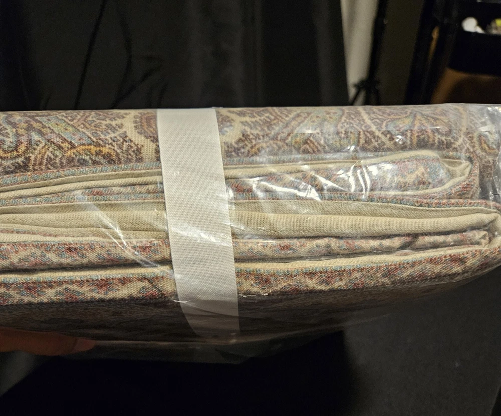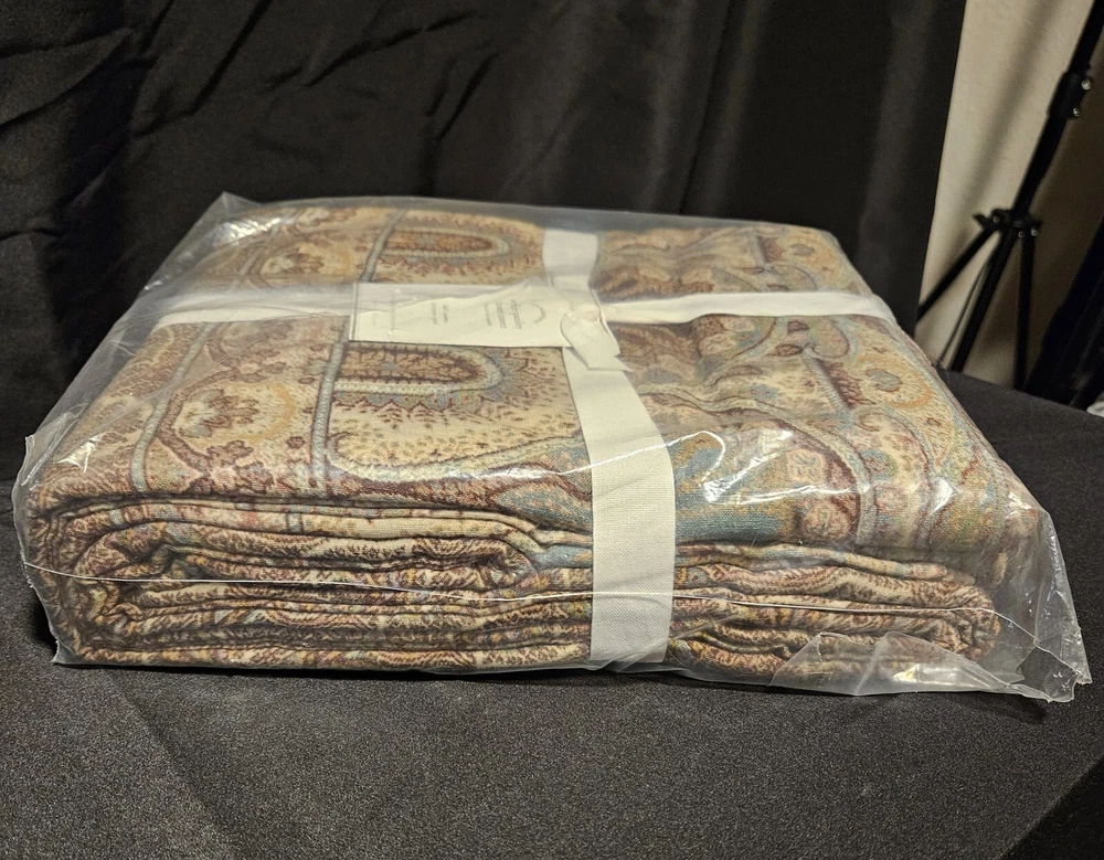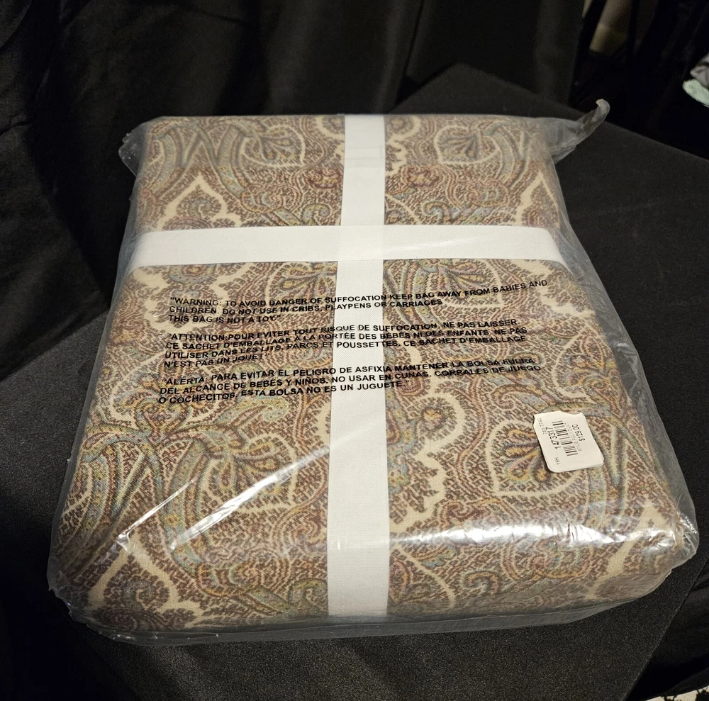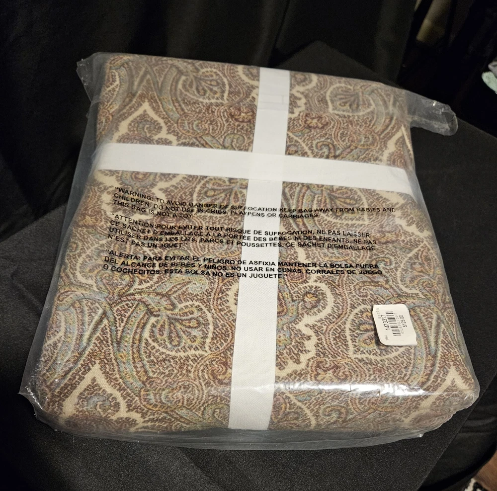 Wylie Paisley Print Cotton Duvet Cover - Brand New, never opened or used. The plastic cover has a 4" slit that is over the main tag. No damage to the actual duvet cover. PLEASE review photos closely and ask questions. NO Shams are included. Details Material: Made of an 85% cotton and 15% linen flax fabric blend. Reversible Design: Duvet reverses to a solid natural color. Secure Design: Duvet features a hidden button closure with inner ties to keep the insert in place. Care Instructions Machine wash. DIMENSIONS Duvet Cover Full/Queen: 88" long x 92" wide CARE AND MAINTENANCE Machine wash in warm water; gentle cycle. Use only non-chlorine bleach when needed. Tumble dry on low heat; remove promptly. Warm iron as needed. 0586