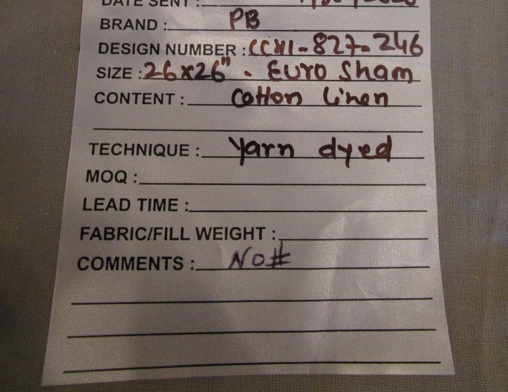 Up For Auction is - Pottery Barn Yarn dyed Euro sham cotton linen photo shoot sample We have purchased many items that are Photo shoot /product development samples for Pottery Barn, they may or may not have labels on the merchandise . Smoke and pet free home.