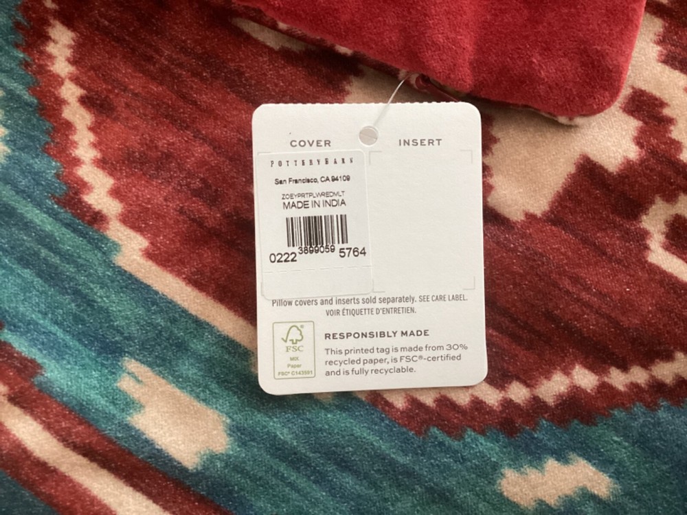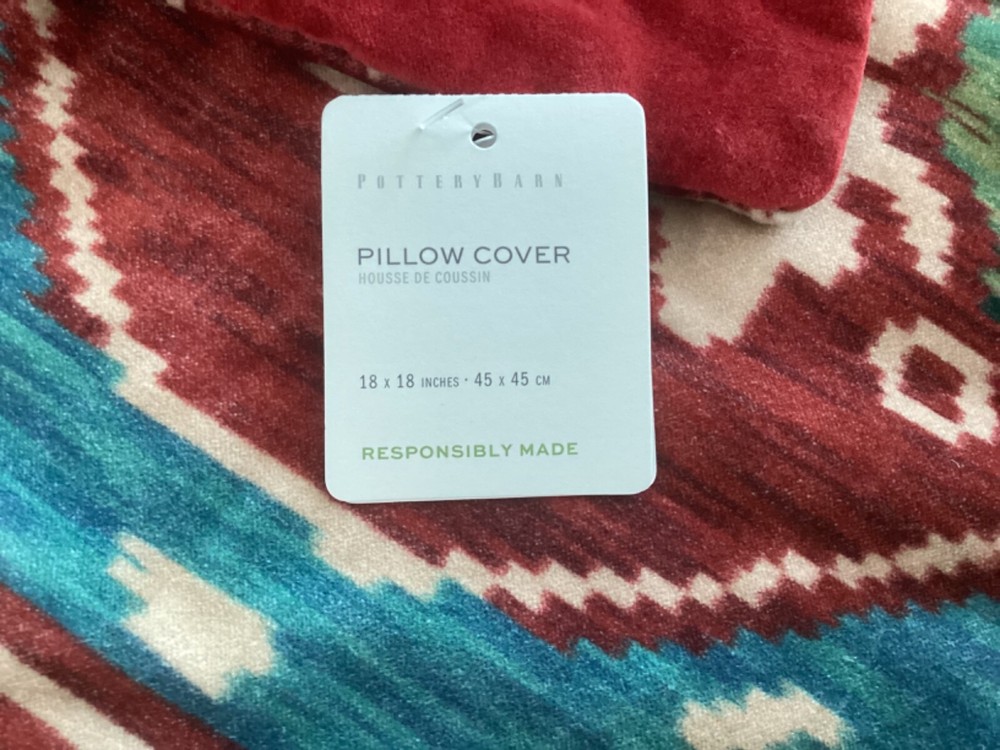 New Pottery Barn Zoey Printed Pillow Cover. This comes from a smoke free and pet free home. Check out our other listings as we can combine shipping. Made with 100% cotton velvet, reverses to same. Accommodates 18" square pillow insert. Sold separately Zipper closure. Reverses to solid. Imported. CARE Spot clean fabric with a damp, white cloth. Blot to remove excess water. Air dry. DIMENSIONS Overall: 18" sq, 0.25" th