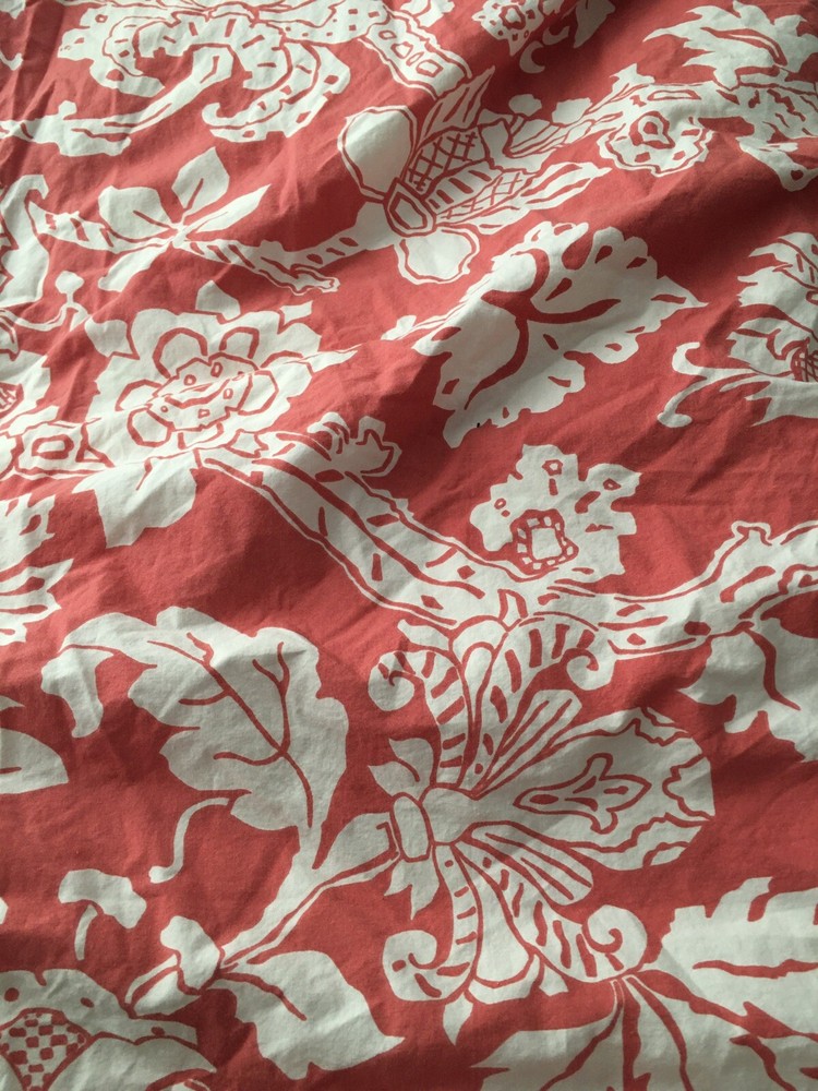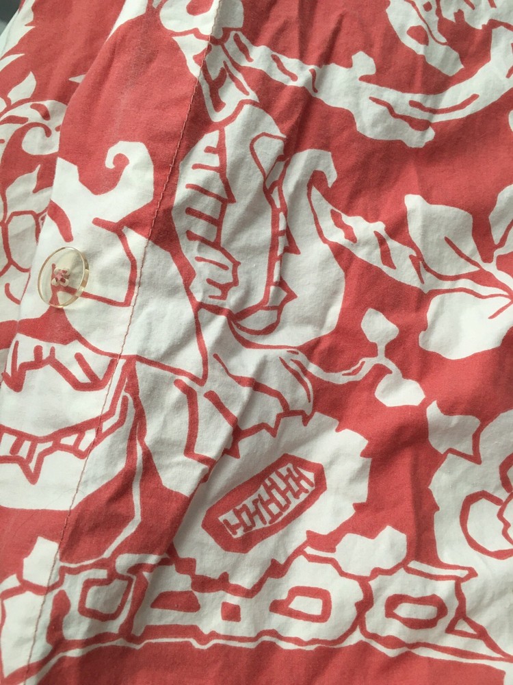 organic cotton bold coral and white floral button closure king size excellent condition with light wear we combine shipping. add to your cart before checkout for best fit compare the measurements to your clothing email us with any questions or concerns smoke and pet free. thank you for stopping