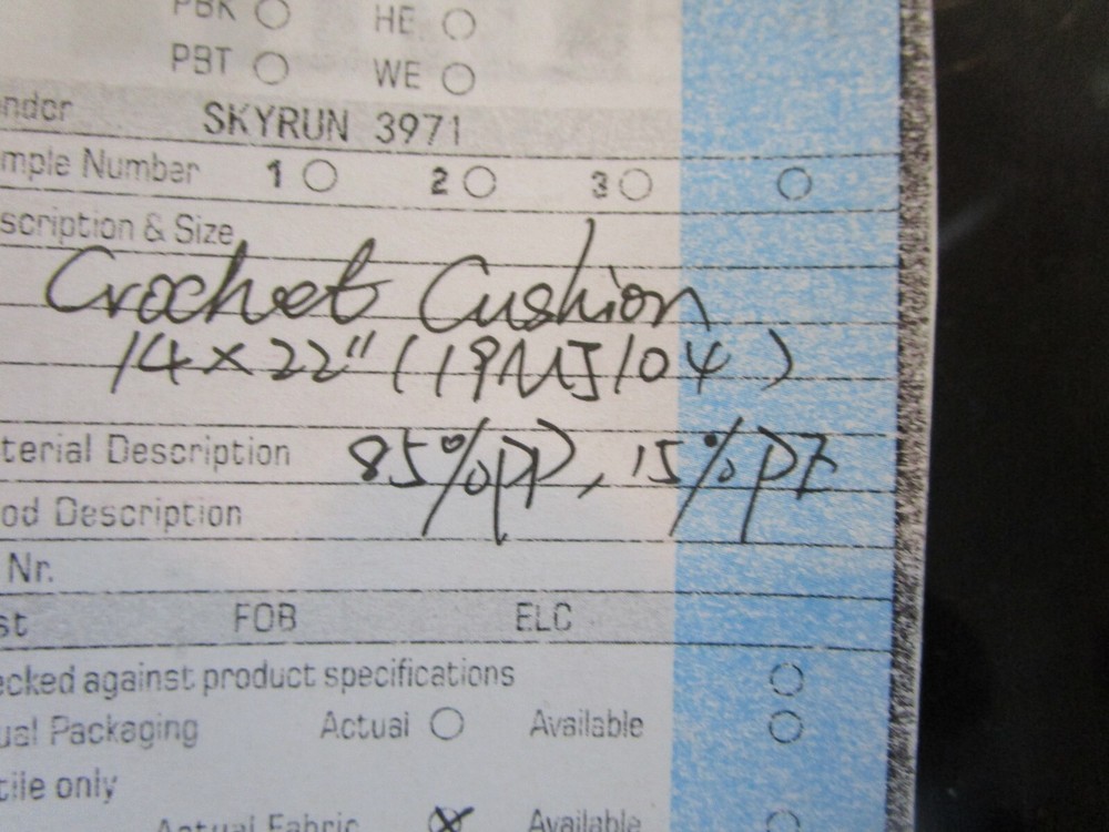 Up For Auction is- Pottery Barn crochet 14 X 22 pillow cover photo shoot sample Pottery Barn photo shoot /product development sample new condition may not have any tags on inside and outside does not include pillow insert Smoke and pet free home.