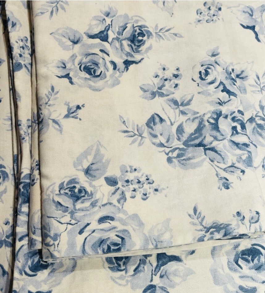 Make your bedroom feel like a quaint French country cottage with this stunning Pottery Barn duvet cover set. The set includes a queen-sized duvet cover and two standard/queen shams, all adorned with a beautiful blue French rose print. Great condition. The linen material provides a luxurious and soft feel, perfect for a comfortable and cozy bedroom. Carefully crafted and designed, this duvet cover set is machine washable for easy care and maintenance. The set is perfect for adding a touch of elegance and charm to any bedroom decor.