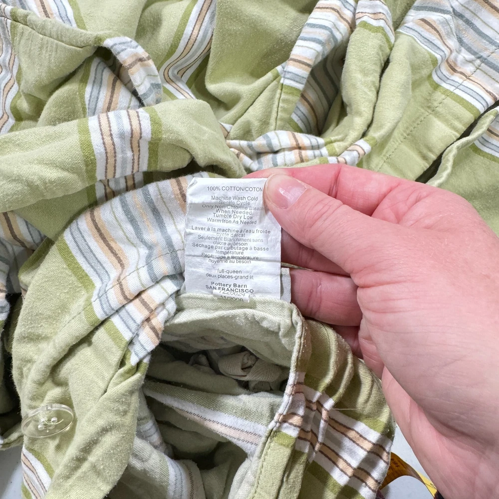 Pottery Barn duvet queen green gray stripes 100% cotton modern buttons classic corner ties Bundles & Returns ***Combined shipping: BUNDLE and SAVE! $10.99 shipping on combined purchases of 2 or more items. This should show as an option at check out, if not please put all items cart and request new invoice. Domestic us orders only. ***Return policy : Full refund 60 day free returns for US orders ***Follow my store to hear about new deals & coupons! New items listed daily!