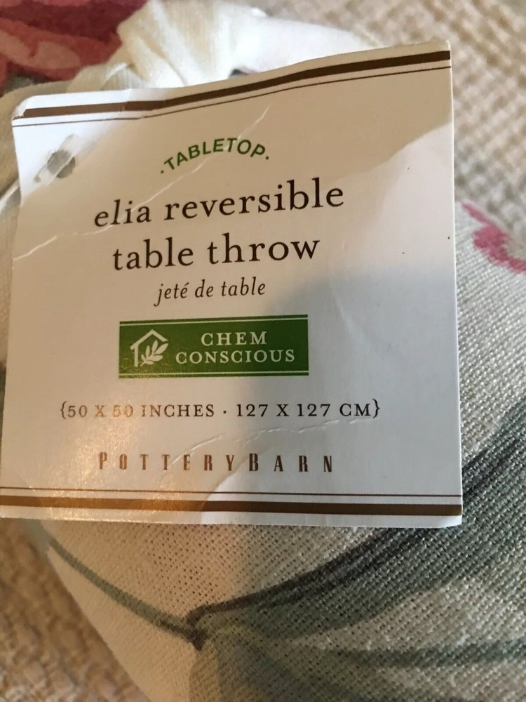 Pottery Barn Elia Reversible Floral Table Throw 50 x 50 Multi Absolutely Gorgeous!! New with tags. Shipped with USPS Priority Mail Retail $89.50...