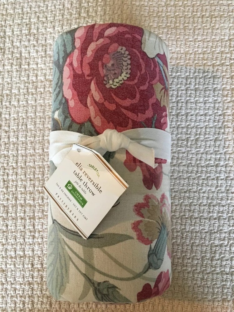 Pottery Barn Elia Reversible Floral Table Throw 50 x 50 Multi Absolutely Gorgeous!! New with tags. Shipped with USPS Priority Mail Retail $89.50