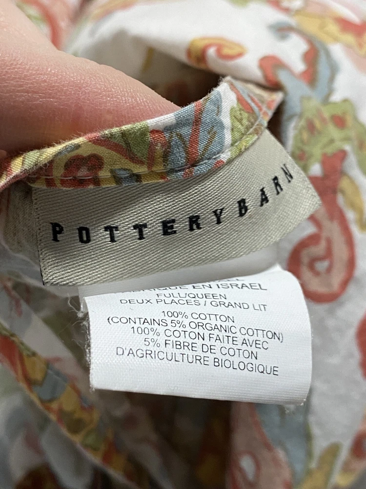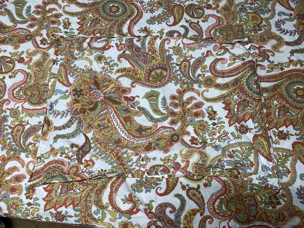 pottery barn full queen duvet brown Paisley and one sham. Item is preowned and in good condition, showing light wear. Light wash fade. Please view all photos and item condition. If the item is vintage, please take extra time checking measurements to ensure proper fitment. Smoke free home