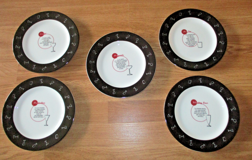 Elevate your entertaining game with this chic set of five Pottery Barn Retro Bar Plates. Each 8-inch salad plate showcases a timeless retro bar pattern in glossy black and white, perfect for adding a touch of sophistication to any table setting. Crafted from high-quality ceramic, these plates are both dishwasher and microwave safe, making them as practical as they are stylish. Whether hosting a cocktail party or serving a casual family dinner, these plates are versatile for all occasions. Their round shape and art pottery production style ensure that they'll be a unique addition to your dinnerware collection. With their contemporary original design, these dishes blend functionality with a retro vibe, making them a delightful choice for any dining event. SET OF 5. EXCELLENT CONDITION.