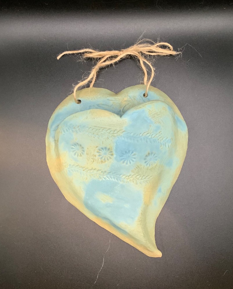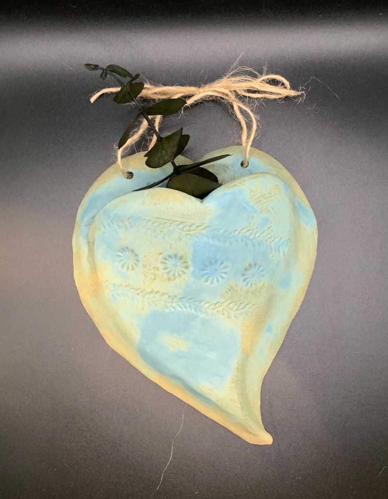 Pottery Heart Shaped Wall Pocket 6"- Valentine - Vancouver Artist -Small studio....