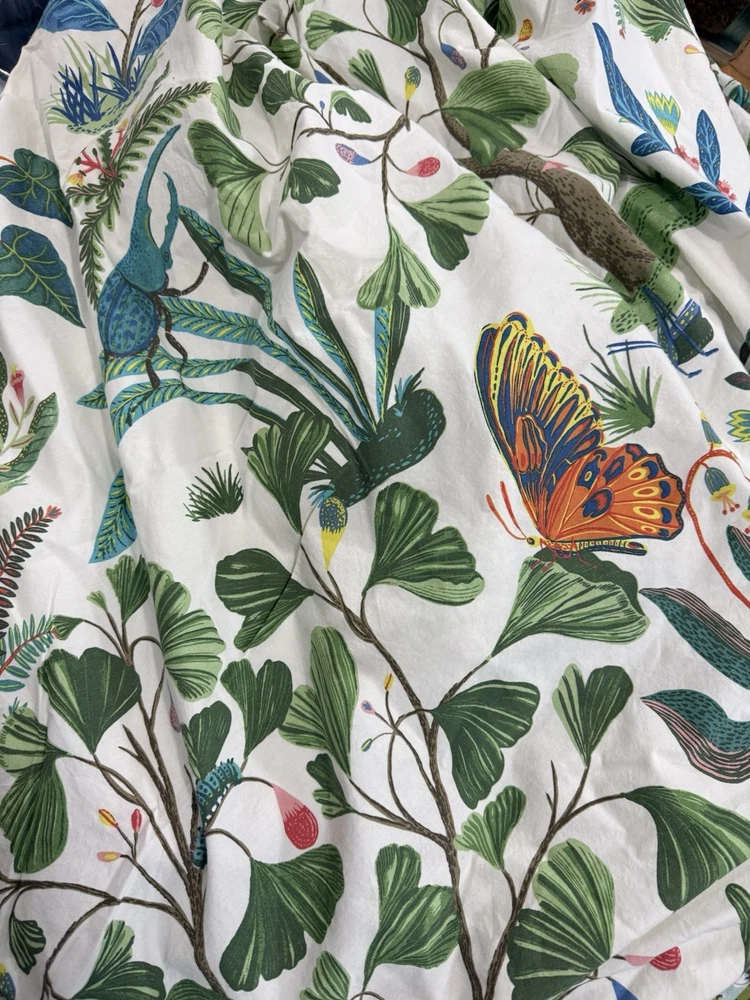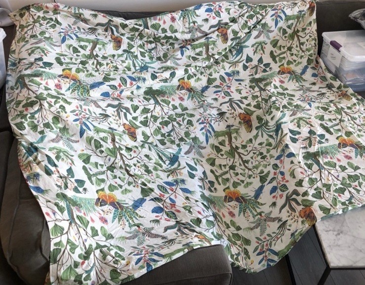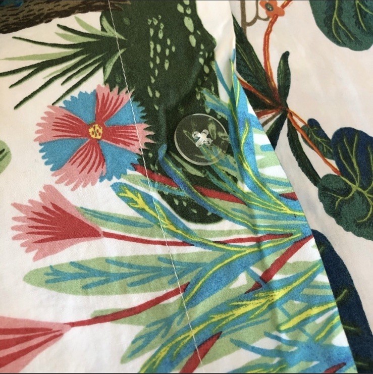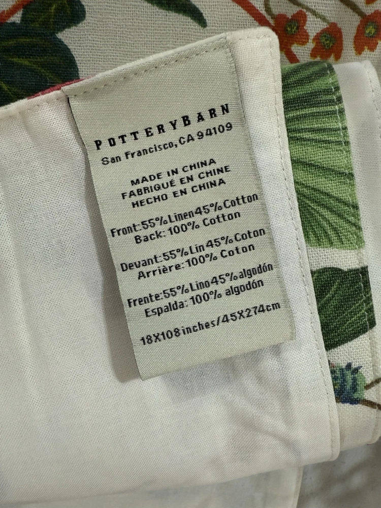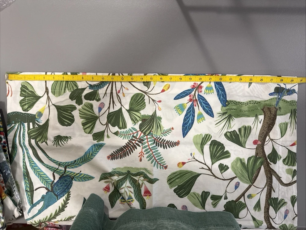 NLA and rare, King size Pottery Barn “Evie” reversible duvet cover with button closure, 3-euro shams (one is new in package) with a 26x26 pillow insert opening, 29.5” overall square, 1- decorative pillow cover (new with tags) and 1-table runner measuring 18”x108”which I used under glass on my dresser. The duvet has a small patch as you can see in the photos but is really hard to notice when it’s on the bed. My dog got a toy stuck in it and tried to bite through it. Please see all photos as I enlarged them so you can judge the size of the patch. It’s about the size a quarter. It is on the busier side of the duvet so it harder to detect.