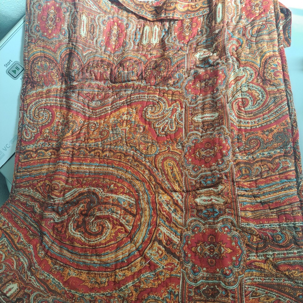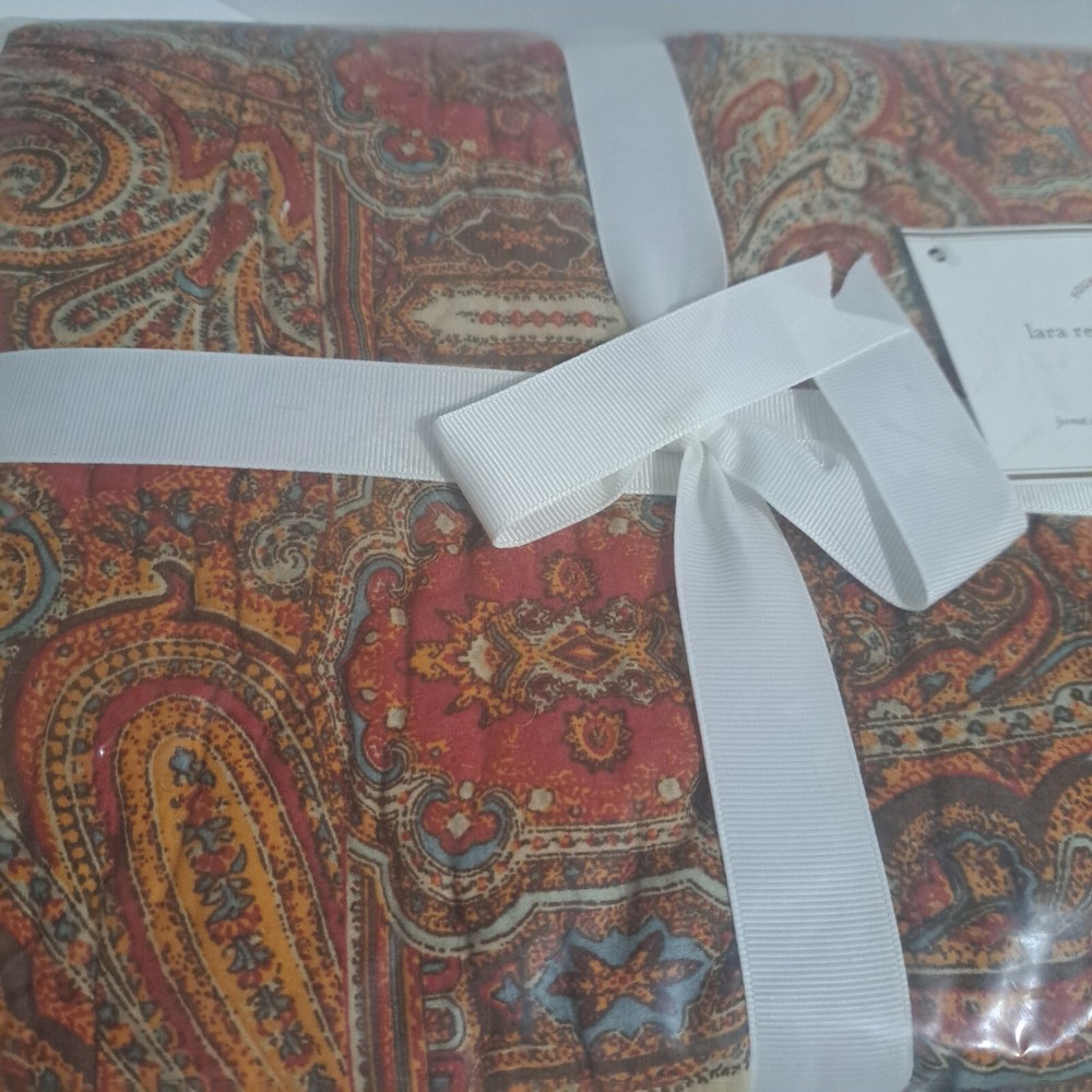 Add a touch of bohemian flair to your bedroom with this set of 2 Pottery Barn Lara pillow shams. The reversible design features a paisley pattern in a vibrant multicolor palette, adding a pop of color to your bedding. Made from 100% cotton, these standard size shams are both soft and durable. The care instructions are simple - just machine wash. The brand name Pottery Barn is synonymous with quality home decor, and this pillow sham set is no exception. Perfect for adding a stylish and comfortable touch to your bedroom.