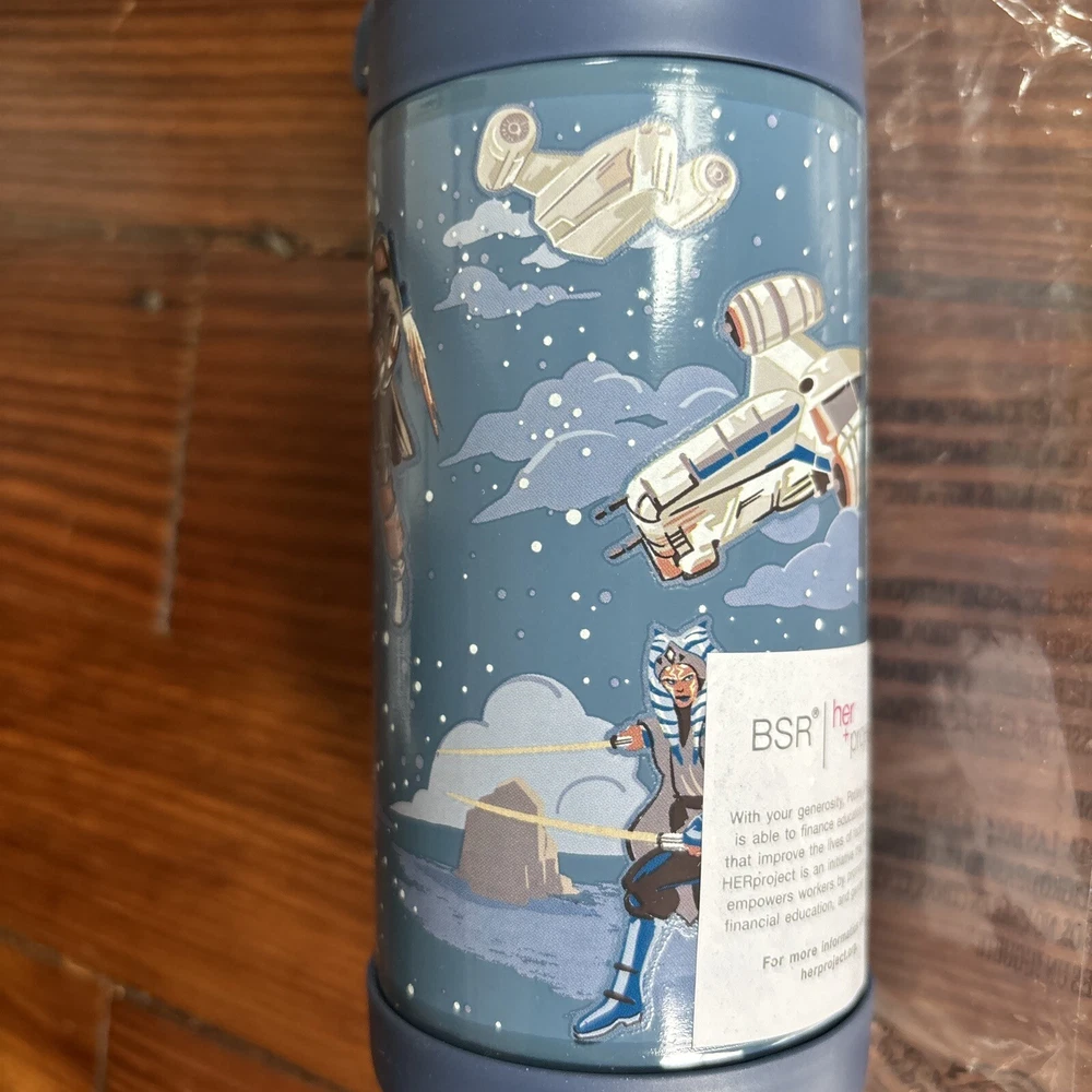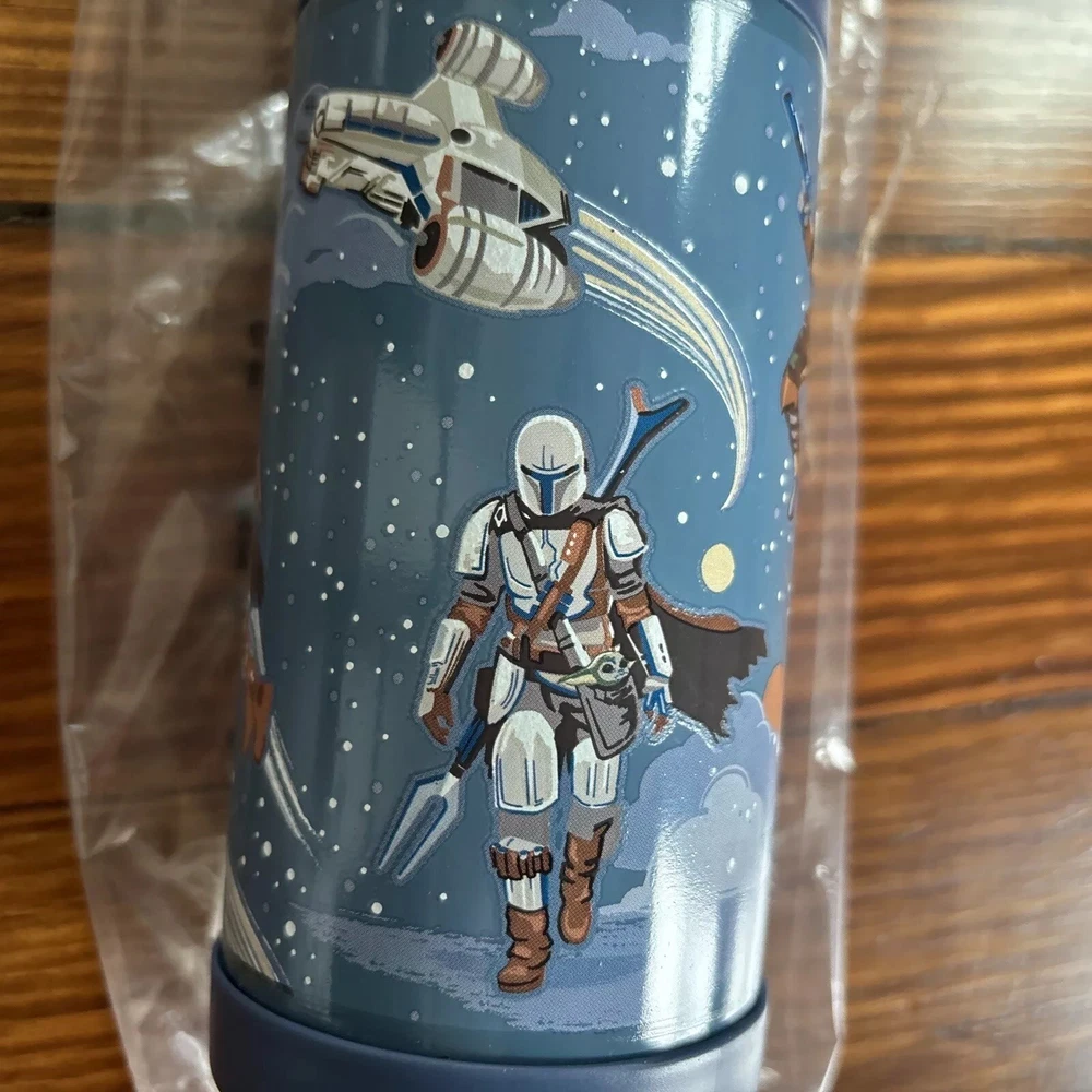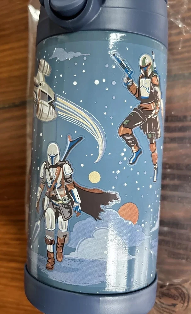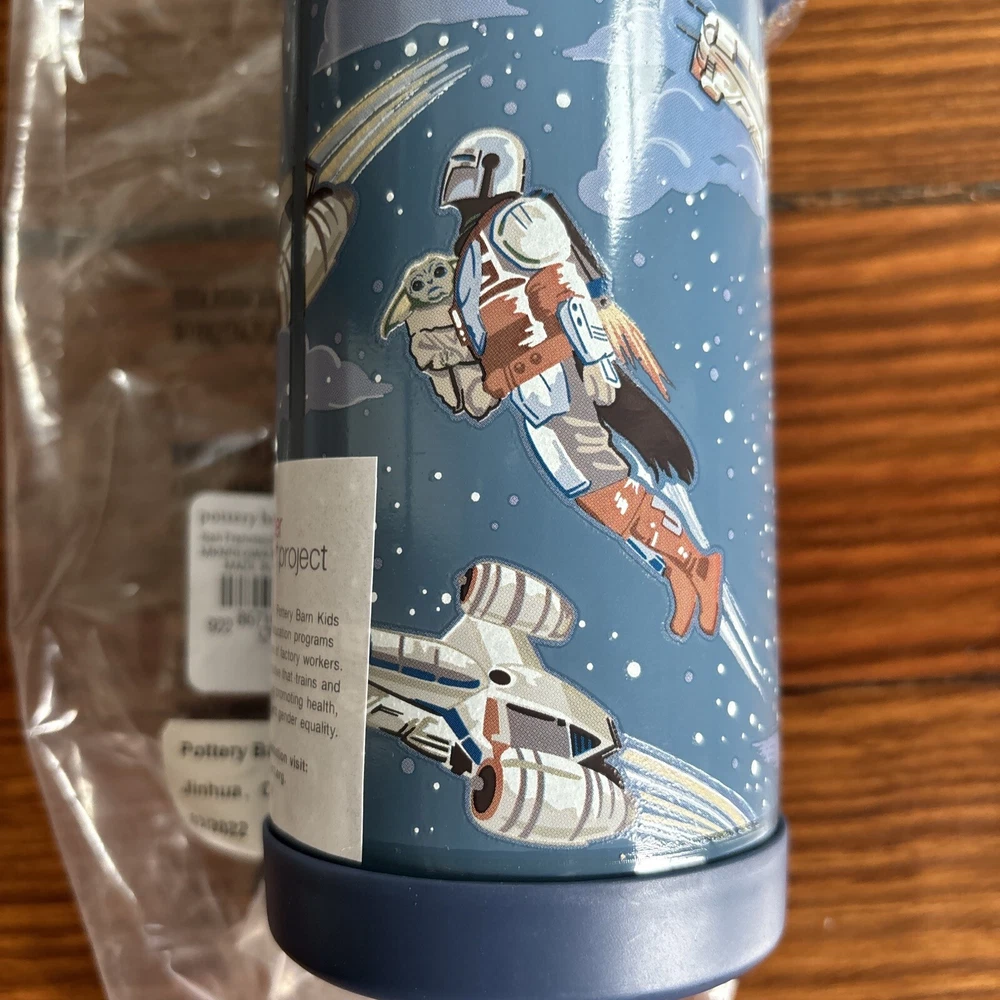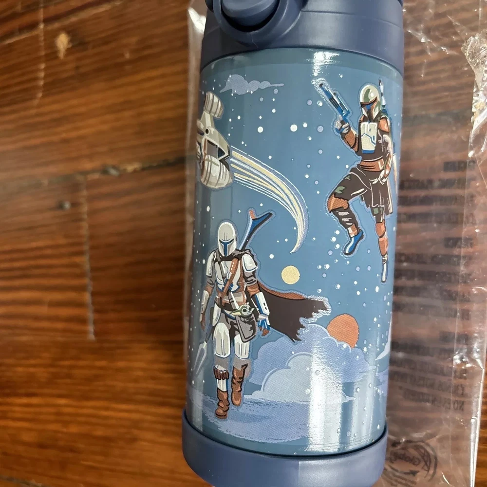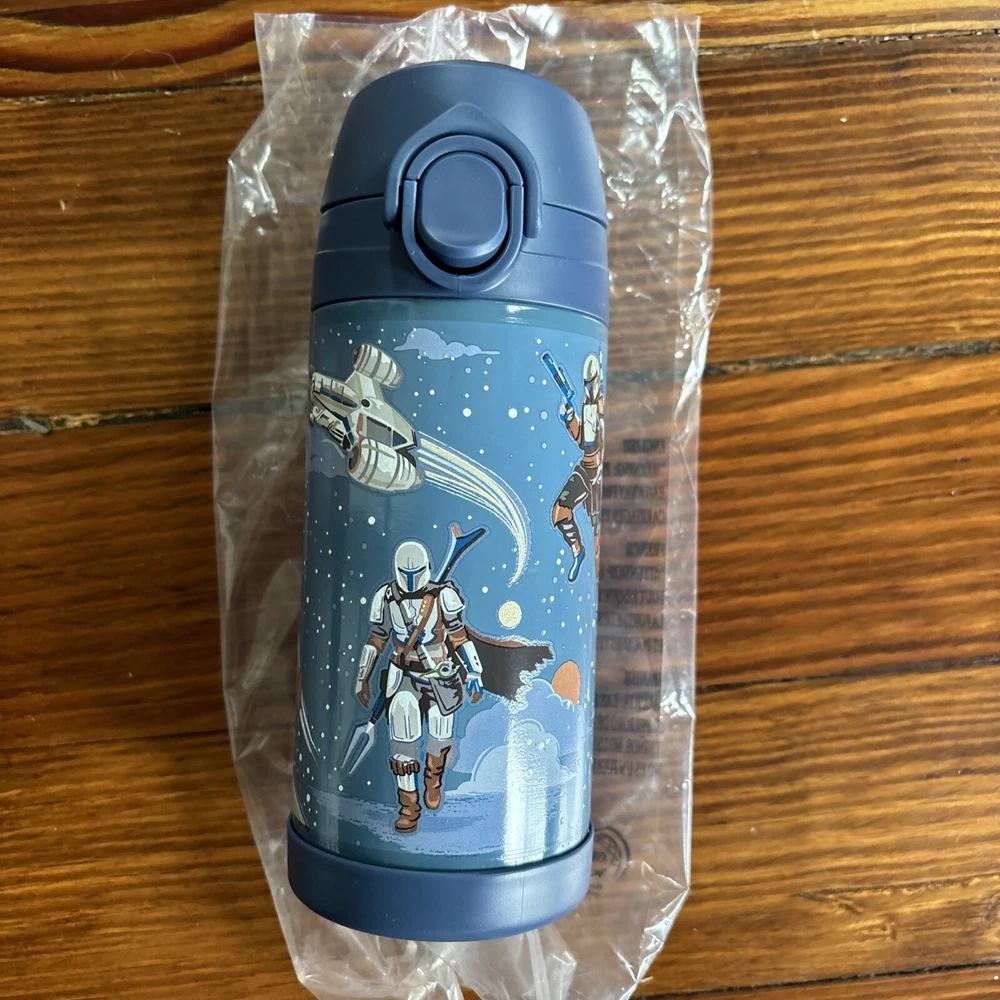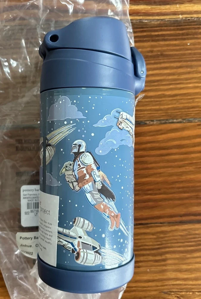 You will receive the following new from pbk 1. 1 star wars Water bottle New in pkg and stainless steel- bpa free and toxic free. pop spout no leaks! Glows in the dark. Ensure healthy hydration on the go with our sporty Mackenzie water bottle, which keeps their favorite beverages hot or cold for up to six hours. Great for school, sports and travel, it’s crafted of BPA-free stainless steel with a spill-proof lid and a handy built-in straw. OVERVIEW Whether you’re sending them off with something hot or cold, it’ll be the perfect temperature hours later thanks to this water bottle, featuring their favorite Star Wars The Mandalorian characters. This BPA-free water bottle keeps hot drinks hot and cold drinks cold for up to six hours, and it glows in the dark. Equal parts cool and functional, it’s dishwasher safe for easy care. DETAILS THAT MATTER Insulated bottles are made with a stainless steel interior and polypropylene cap. Finished in our exclusive prints and fun colors; no liner needed. Insulated bottles have a silicone straw to reach all the way to bottom so you won't miss that last drop. Push-button pop-up lid makes it easy to open and has a lock to prevent spills and leaks. Vacuum-valve stopper prevents leakage when completely pressed down. KEY PRODUCT POINTS Slim design fits most bottle/cup holders; opening fits large ice cubes. For best results, pack upright with cap closed. Dishwasher safe. Lightweight and reusable. Hypoallergenic and fade resistant. Each piece is BPA- and lead-free. DETAILS THAT MATTER Insulated bottles are made with a stainless steel interior and polypropylene cap. Finished in our exclusive prints and fun colors; no liner needed. Insulated bottles have a removable silicone straw to reach all the way to bottom so you won't miss that last drop. Push-button pop-up lid makes it easy to open and has a lock to prevent spills and leaks. Vacuum-valve stopper prevents leakage when completely pressed down. KEY PRODUCT POINTS Slim design fits most bottle/cup holders; opening fits large ice cubes. Hot liquids up to 122° Fahrenheit. Keeps liquids cold for up to 6 hours. For best results, pack upright with cap closed. Dishwasher safe; on top shelf only. Lightweight and reusable. Hypoallergenic and fade resistant. Each piece is BPA- and lead-free.