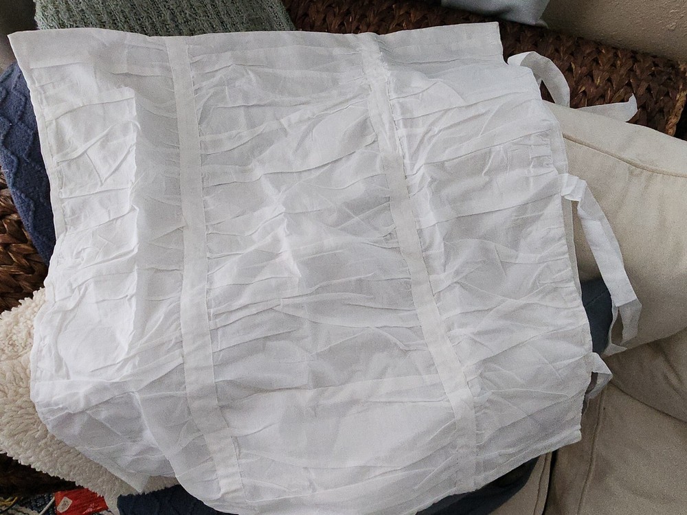 selling off my extra pottery barn hadley ruched white 26" euro shams. Shams are used, but in excellent condition. Shams are ruched only on 1 side. I have several available. PRICE IS FOR 1 SHAM! comes from a pet and smoke free home I have LOTS of PB treasures, so please check out my other listings. I have matching duvets and other shams in separate listings if interested.