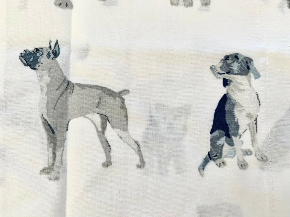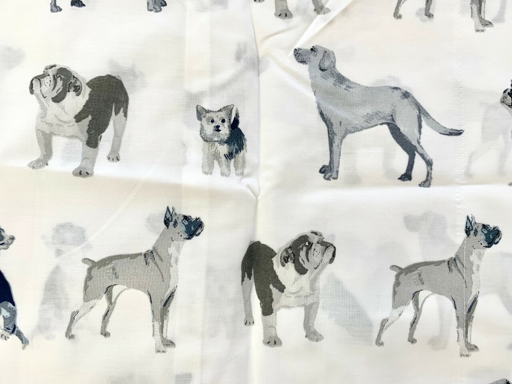 Pottery Barn Kids Organic Decorator Dogs Sheet Set size: Full 100% cotton Fitted Sheet: 54" wide x 75" long; fits mattresses up to 16" deep Flat Sheet: 90" wide x 96" long Standard Pillowcase (2): 30" wide x 20" high total 4 pieces! color: blue grey white see pictures Bring top dog style to your little one’s sleep space. Inspired by America’s favorite pooches, this sheet set features realistic artwork of all their furry friends. It’s made from supersoft pure organic cotton that’s GOTS certified, the gold standard of organic textiles, so they can have a healthier night’s sleep. Made of 100% organic cotton percale. Organic cotton is grown without the use of toxic and persistent pesticides and synthetic fertilizers. DETAILS THAT MATTER Fitted sheet has universal elastic (elastic around the entire edge) for a snug, secure fit. 200-thread count. Oeko-Tex® Certified: tested in a third-party lab and verified to be free from over 300 harmful substances. Organic Content Standard (OCS) certification. Textiles made of organically grown materials according to the Organic Content Standard guarantees the traceability and integrity of the raw materials during all the manufacturing stages. Machine wash. Imported. New in Original Packages from a smoke free, pet friendly home!