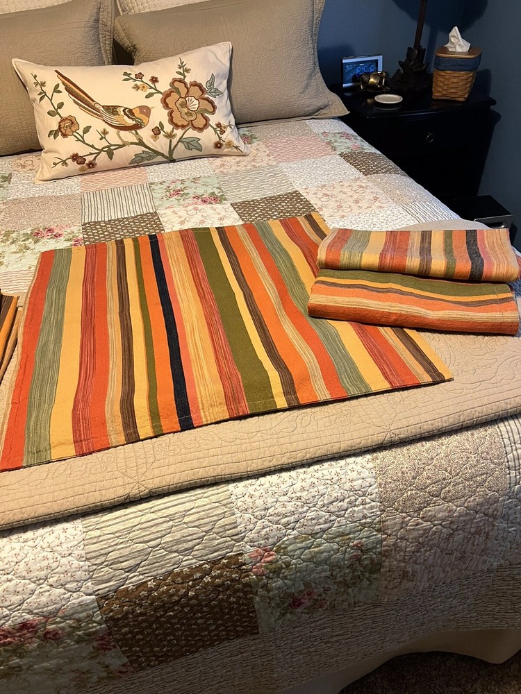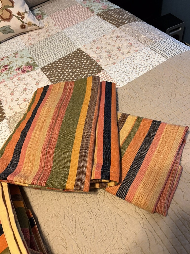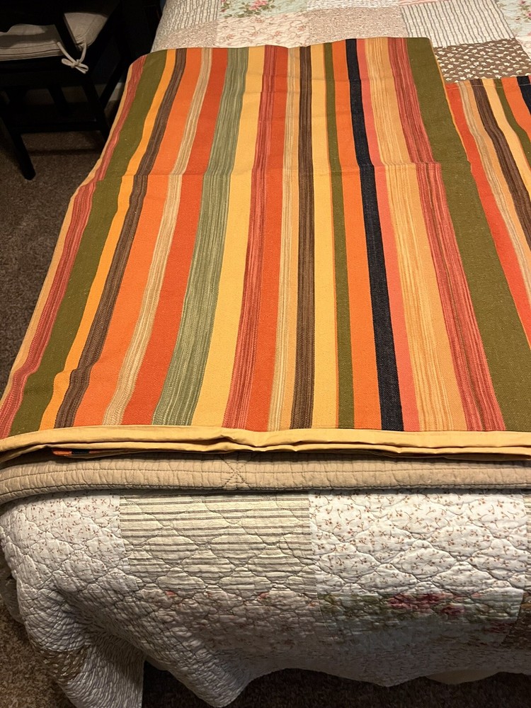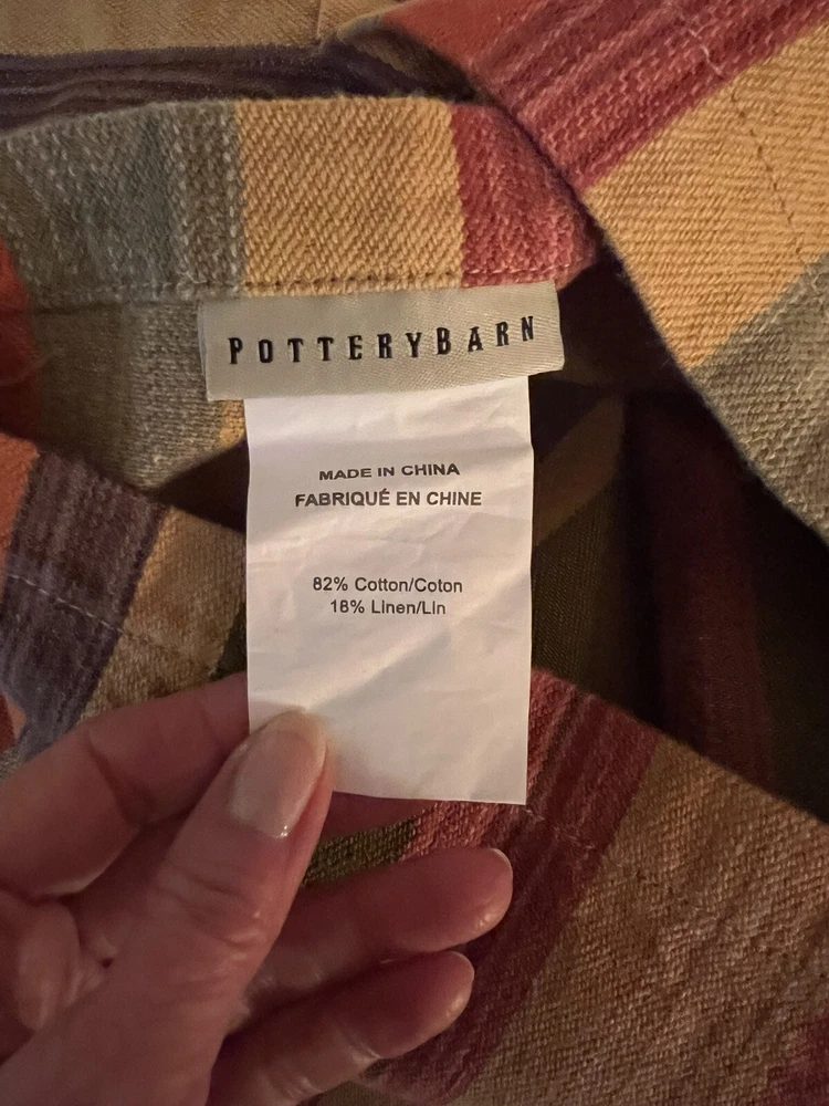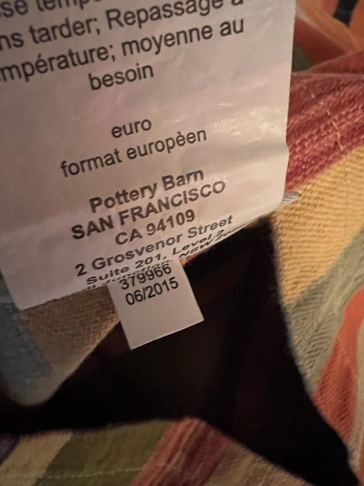 The PotteryBarn Duncan Stripe Twin Duvet Cover with 3 Euro Shams is a traditional style bedding set perfect for adults' bedroom. Made from a comfortable cotton linen blend material, this duvet cover features a classic multicolor stripe pattern and button closure. With a size of 84" in length and 66" in width, this duvet cover from the reputable brand Pottery Barn adds a touch of elegance to any bedroom decor. Duvet and shams are in excellent condition. Please note: one of the euro shams appears lighter/muted in color. All items come from a smoke free, dog friendly home.