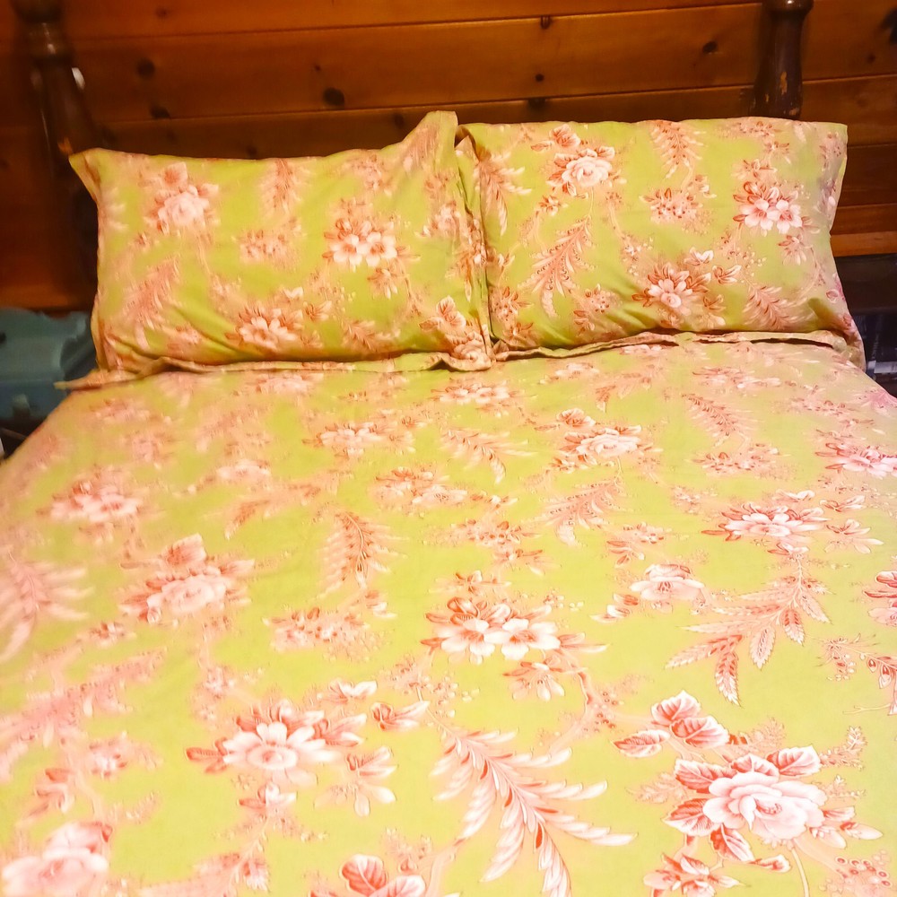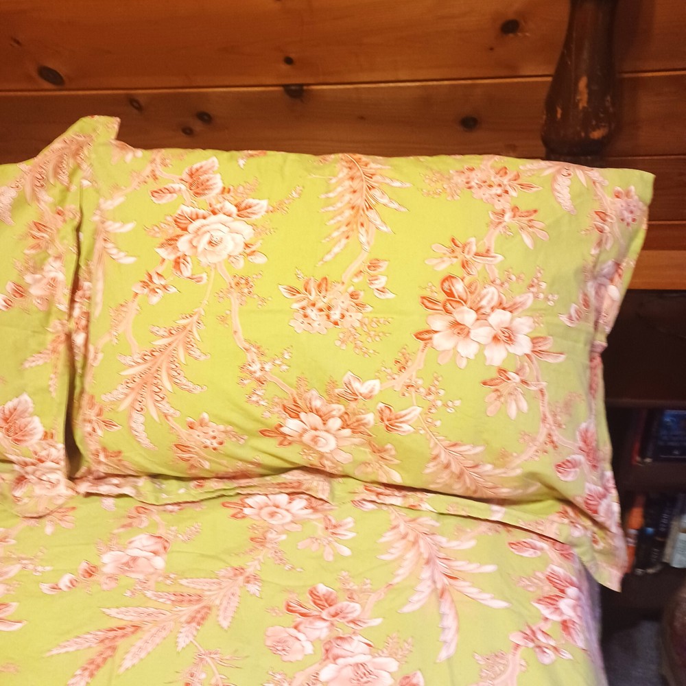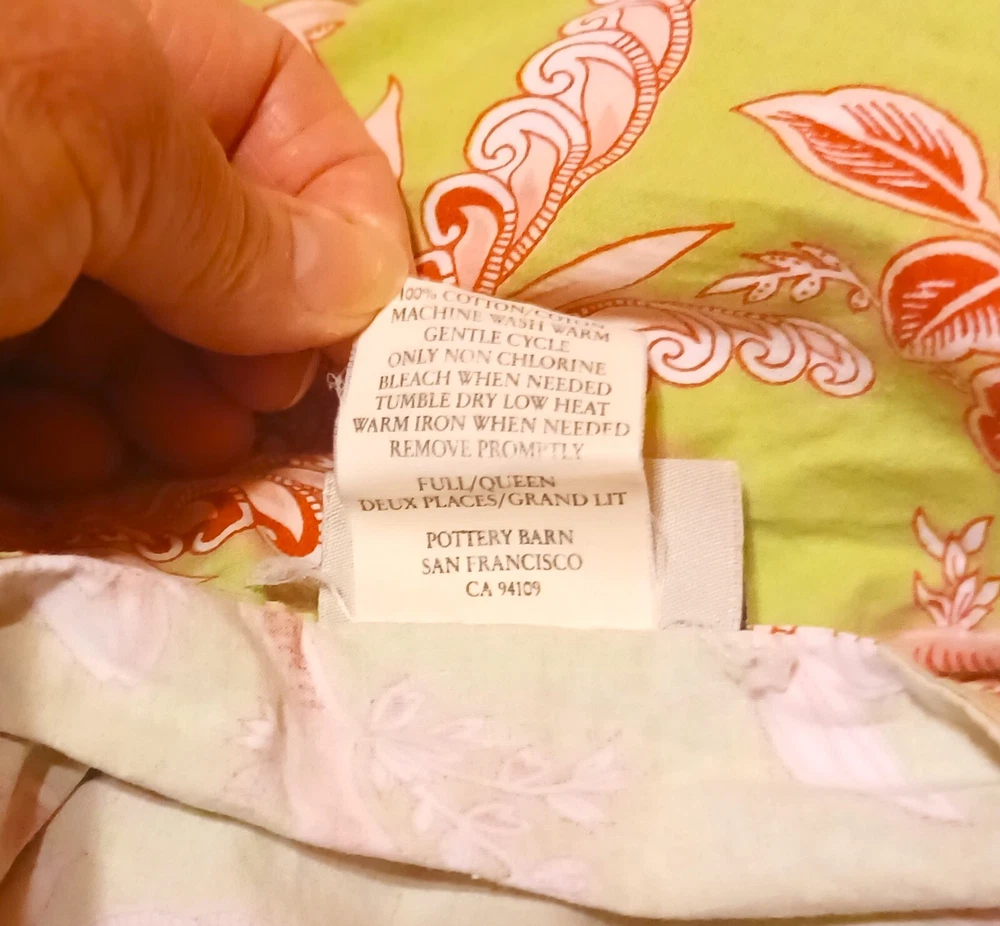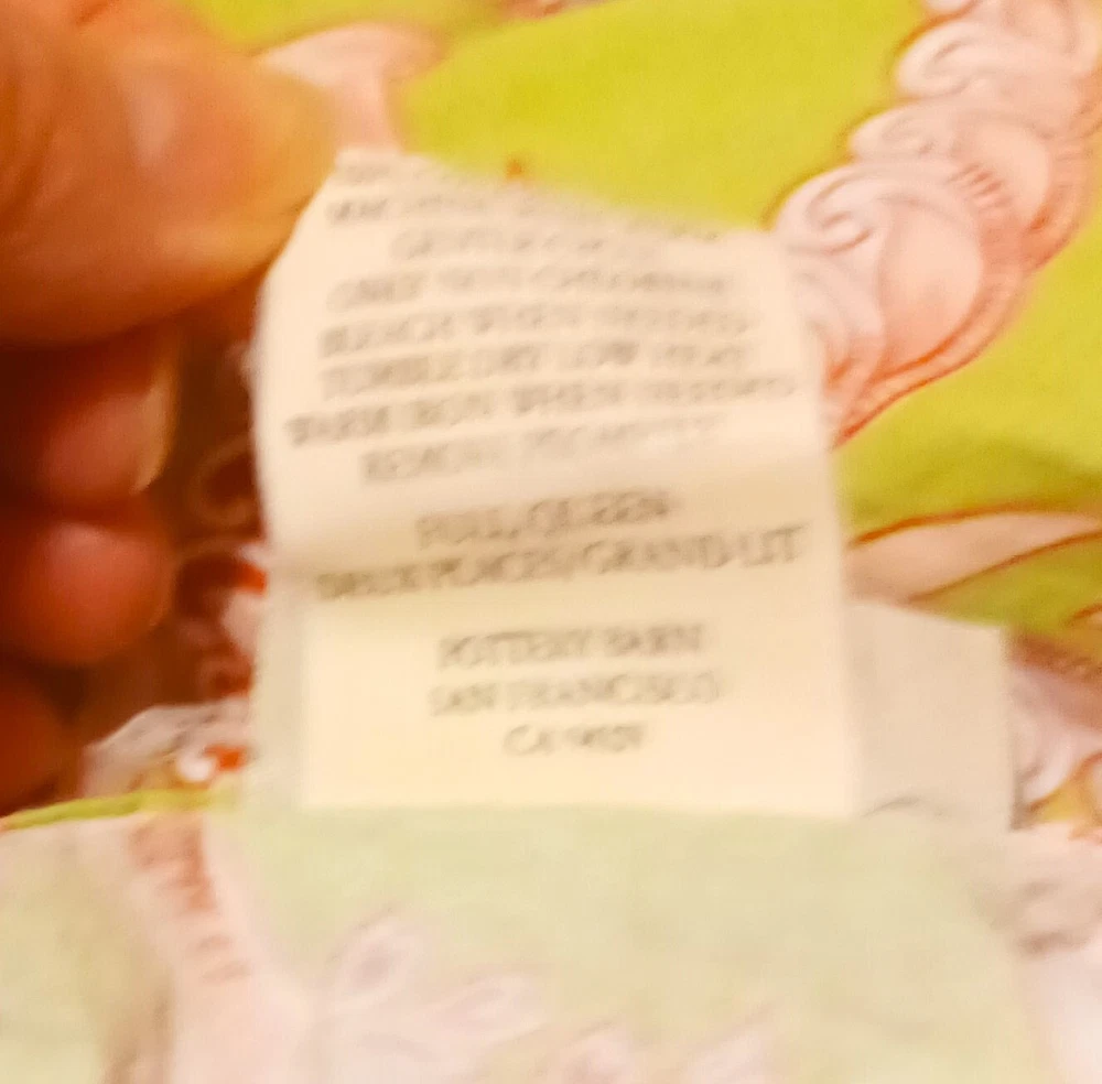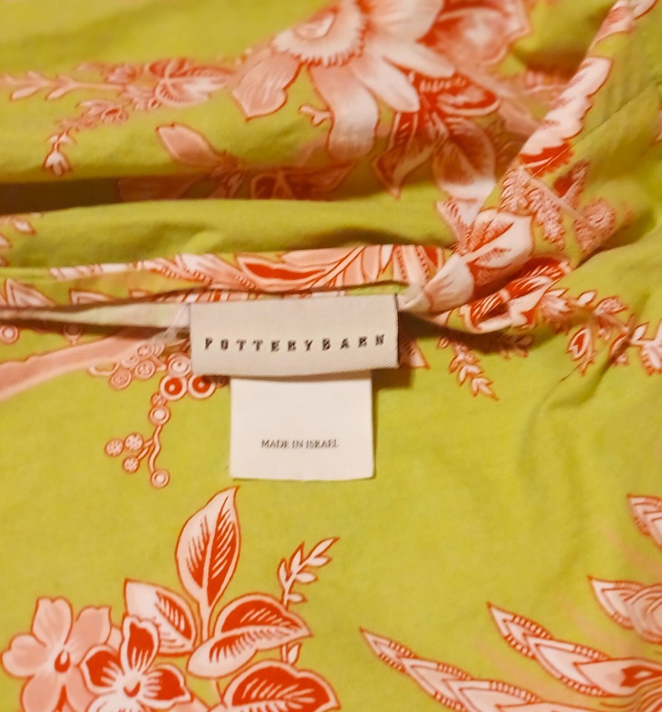 Add a touch of elegance to your bedroom with this beautiful three-piece Pottery Barn duvet cover and pillowcase set. The floral pattern and multicolor design make it a perfect addition to any bedroom decor. Made of 100% cotton, the fill material ensures comfort and durability. The set includes a queen-sized duvet cover and two pillowcases, all with button closures. The brand's attention to detail is evident in the high-quality cotton material and the intricate flower theme. This set is perfect for anyone looking to add a touch of style to their bedroom. Please view all photos for condition, they are part of the description. The color in my pictures is not as good as in person. They are Green with redish and white flowers. beautiful set. No flaws that I could find. This set has been laundered. I use scented dryer sheets so you may want to wash them again if you don't like the scent.