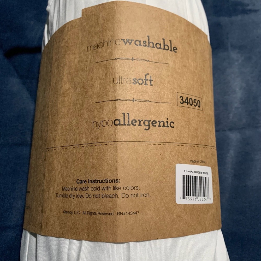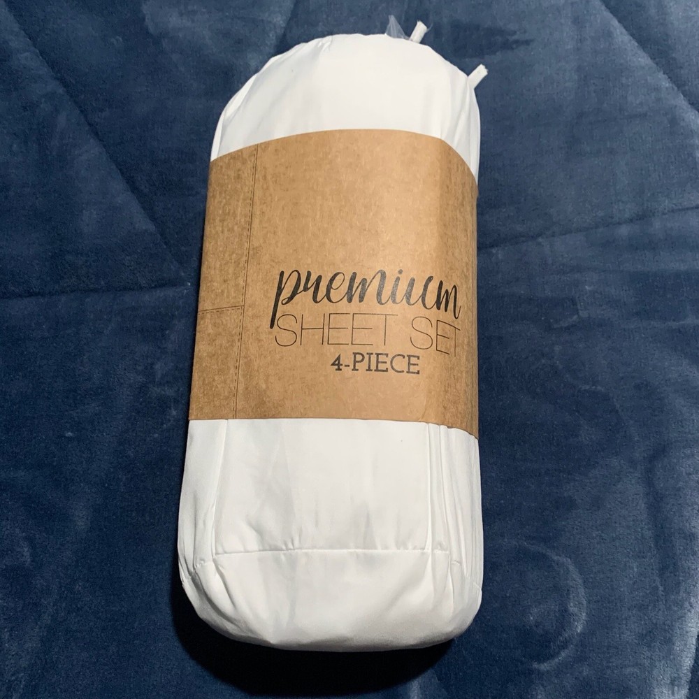 Premium 4 PC Queen Sheet Set White Ultra soft Hypoallergenic 1 Fitted Sheet 60"X80"X14" 1 Flat Sheet 90"X102" 2 Pillow Cases 20"X30"...