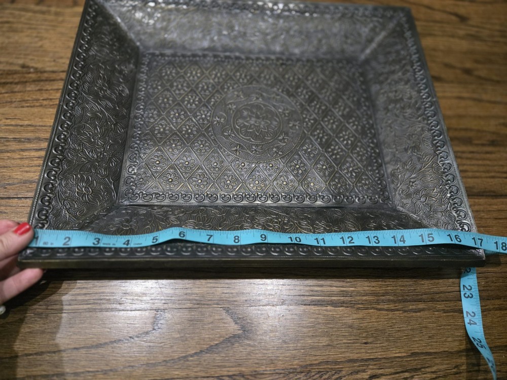 Pre-owned Pottery Barn Persian Repro Brass And Wood tray...