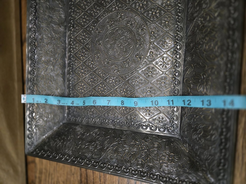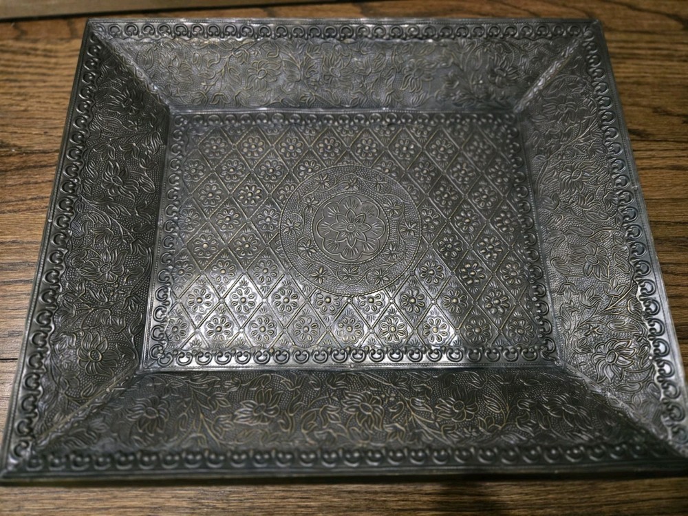 Pre-owned Pottery Barn Persian Repro Brass And Wood tray