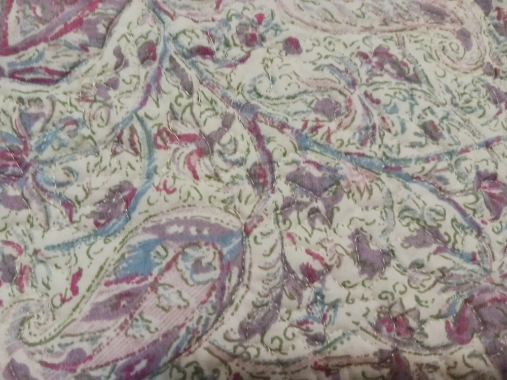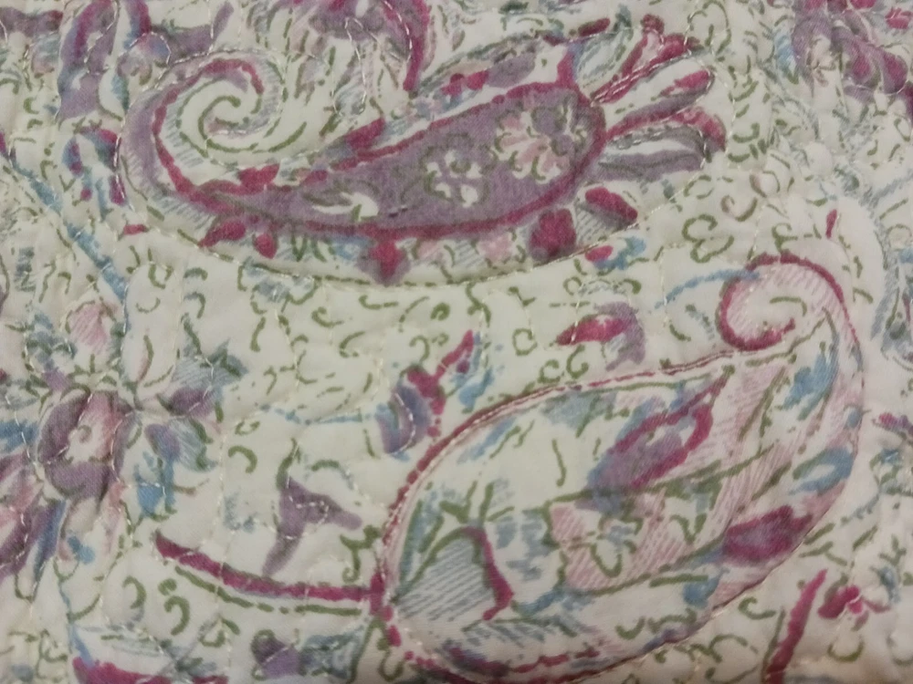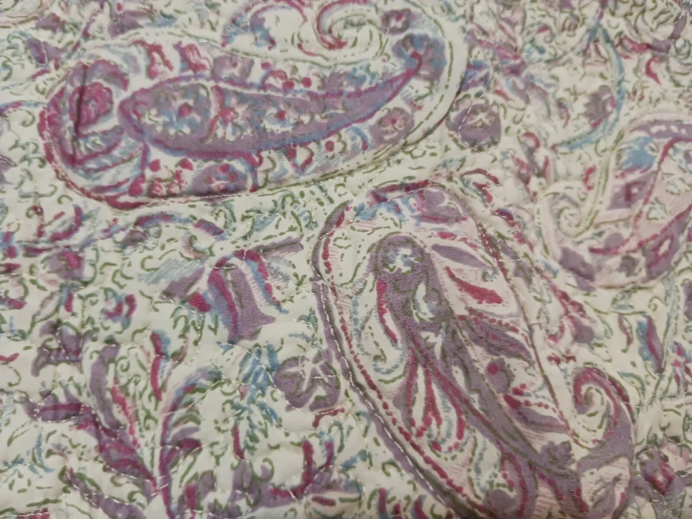 This pillow sham is absolutely stunning! The lilac paisley pattern is so elegant, and the quilted cotton feels luxurious. Perfect fit for standard pillows with easy tie closure. Adds a touch of cozy sophistication to any bedroom.
