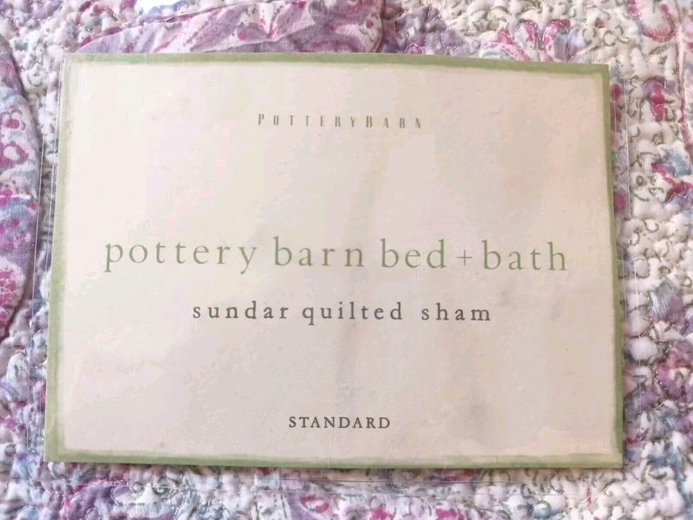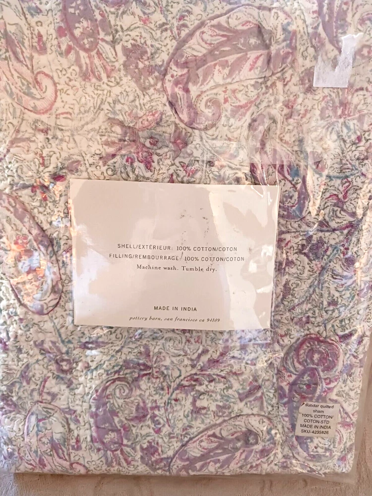 Lovely Pottery Barn Bed + Bath Sundar line quilted cotton pillow sham. Lilac / lavender floral Paisley pattern. 21 x 27 inches, tie close.