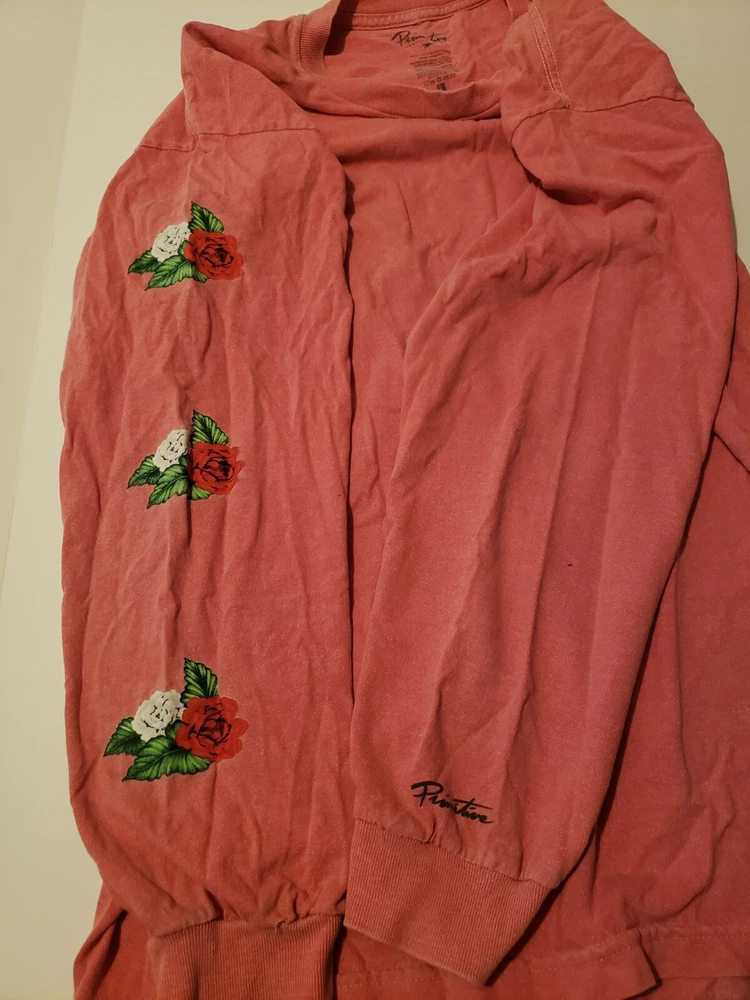 Primitive longsleeve shirt size large Rip N Dip socks. Top has two holes both are under the armpit**see photos Also has a dot stain* see photos Rip N Dip socks are new still in packaging Both items are sold as is