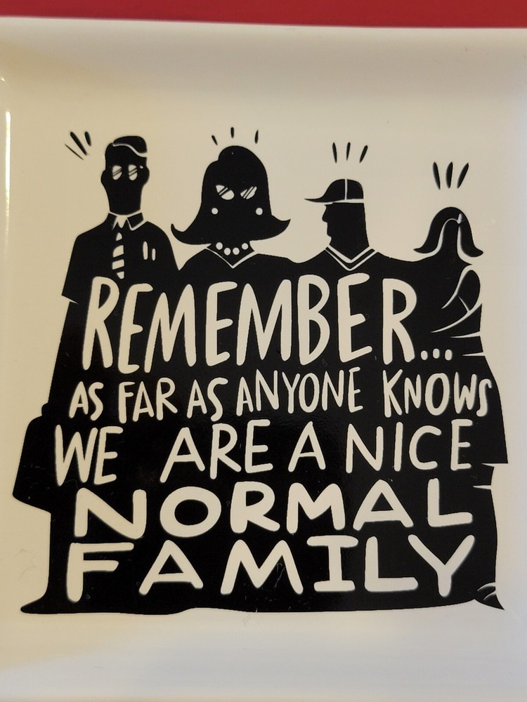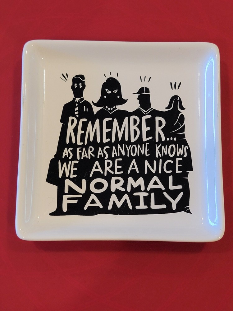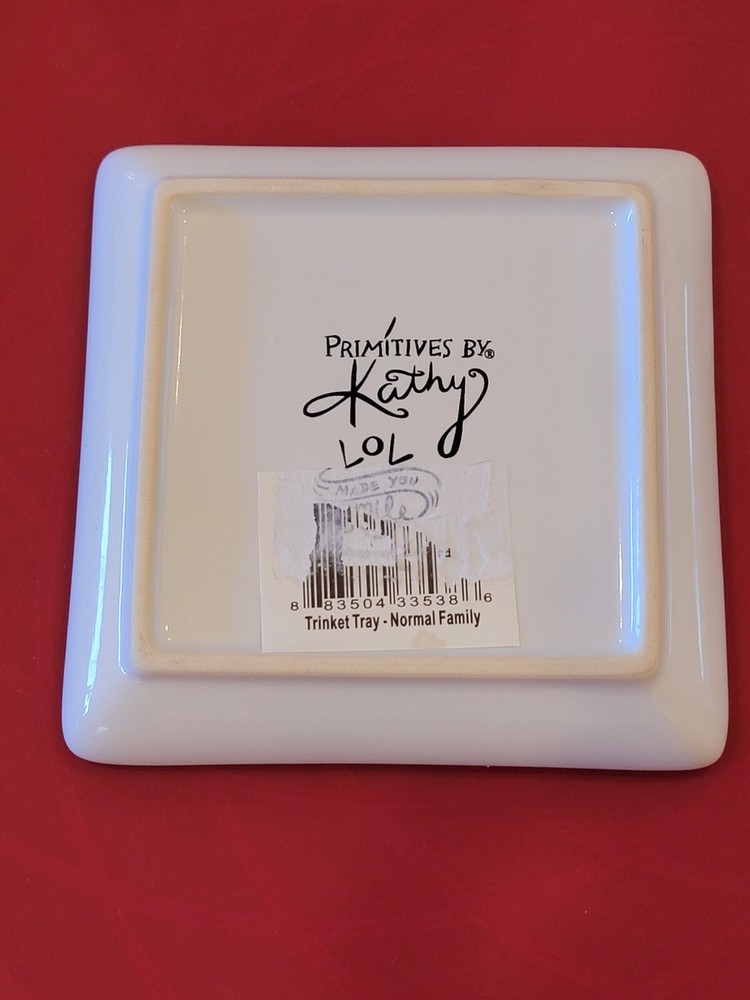 Primitives By Kathy Heck Studio with graphics and phrase... "Remember....As Far As Anyone Knows We Are A Nice NORMAL FAMILY." This adorable ceramic square Trinket Dish is in great, unused condition and measures 4.25" x 4.25" The designer is Kathy Heck Studio "LOL Made You Smile" line of trinkets. Make a great fun gag gift for that normal family. Lol 100% Positive Feedback Seller. Buy with confidence. Shipping includes tracking and insurance. Inv#c-11