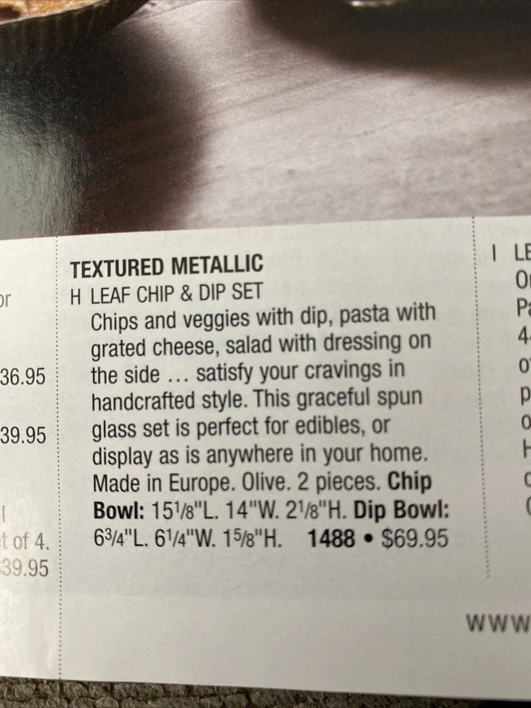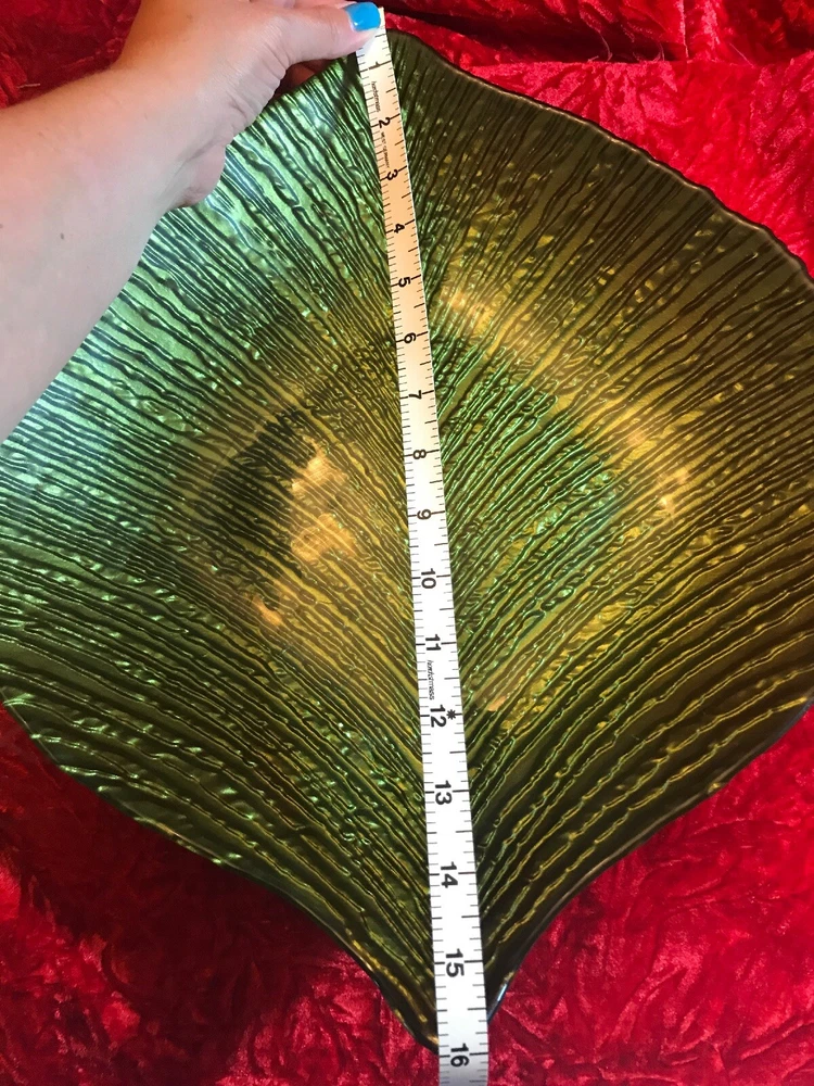 Princess House Exclusive Large Metallic Leaf Textured Serving Bowl. Condition is Used. • Princess House Large and small serving bowls • Set of 2 • Spun glass leaf design • Technique makes each one unique • Made in Turkey • 16 X 14.5”large • 7 X 6.5” small • Only used for display • Not in original box • Gorgeous!! Please ask any questions. I love to combine shipping! Payment is due within three days or item will be relisted. I ship Monday through Friday, the day after payment is received. Please contact me with any issues, I offer returns and will make any situation right. We are non-smoking dog lovers! Feedback will be left after item is received and I know you are satisfied with your purchase. I will know when you leave feedback for me! And, as always, thanks for looking!