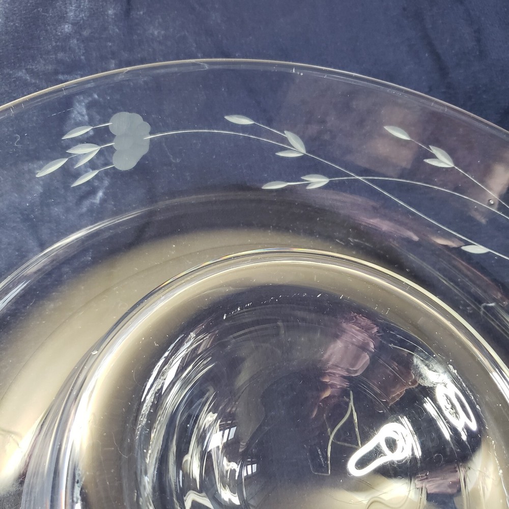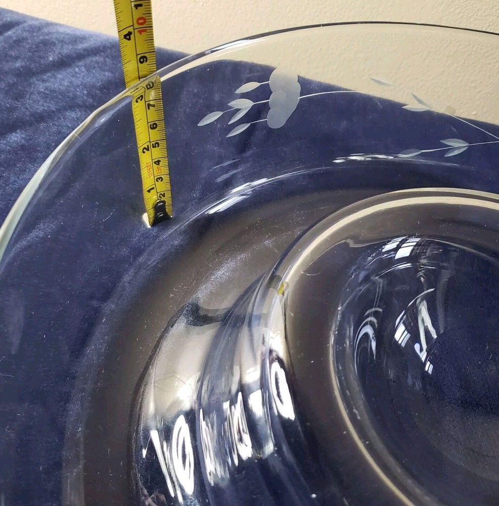 Princess House Heritage Etched Crystal Chip and Dip Large Server. Previously used with minor visible sign of wear, no cracks or chips, Measures 11 1/4" D × 3 1/4" Thank you