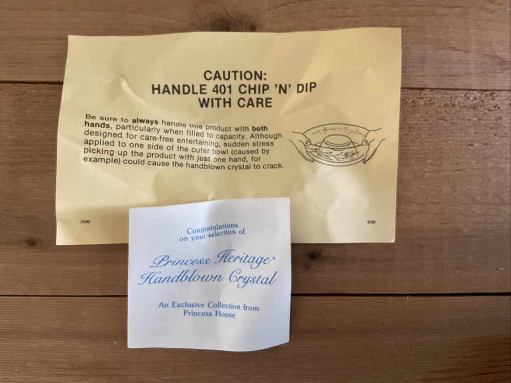 Priness House Heritage Handblown Crystal 11 inch Large Chip and Dip Bowl Dish #401 EUC. Beautiful Handblown Crystal New in Box Hand wash…see instructions included...
