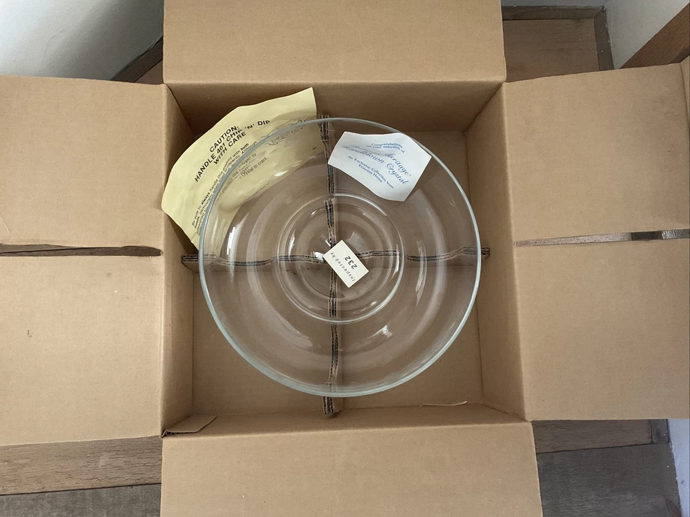 Priness House Heritage Handblown Crystal 11 inch Large Chip and Dip Bowl Dish #401 EUC. Beautiful Handblown Crystal New in Box Hand wash…see instructions included