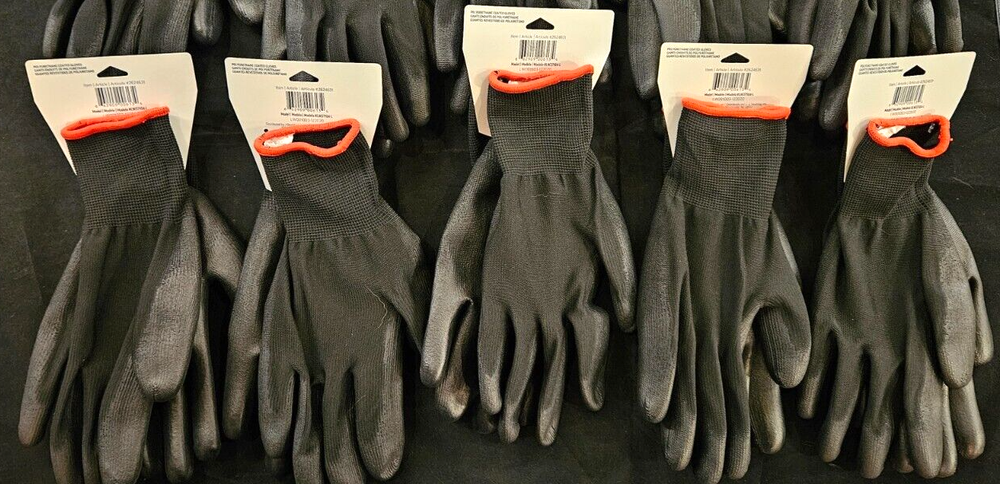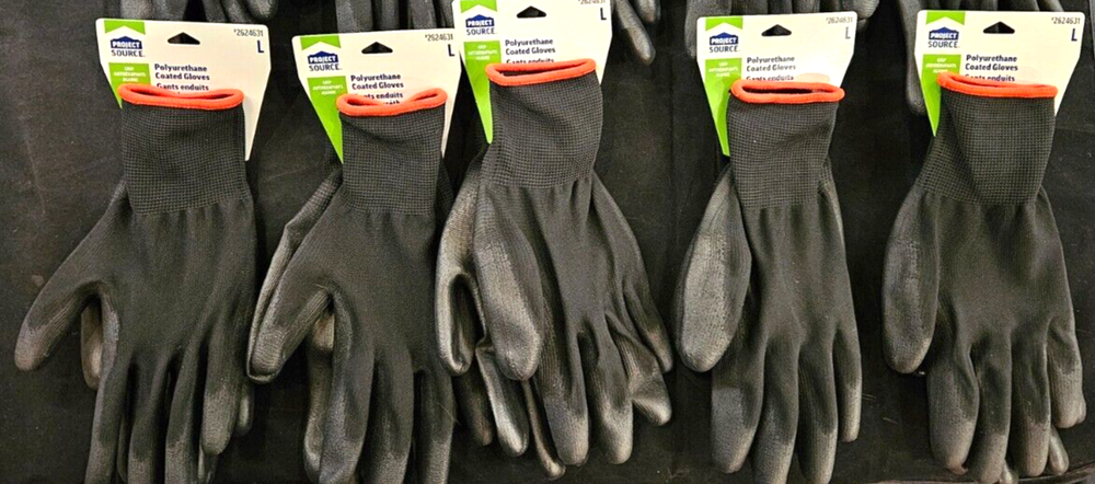 Up for sale is a brand new Project Source Large Black Polyurethane Dipped Polyester Gloves 5 Pair. My items are all purchased at local large retail stores. I do not sell any imitation products. Please see my other large amount of items up for sale at my eBay store. Also take a look at my great customer feedback and how fast my shipping is. Thanks for looking and Have a Great Day. Light weight polyurethane all purpose dip is durable and provides great grip.The stretch knit shell is breathable and comfortable. Elastic wrist helps keep unwanted dirt and debris out of the glove. Grip gloves Polyurethane coating on polyester knit shell for extra grip Elastic wrist for tight fit to keep out dirt and debris Lightweight