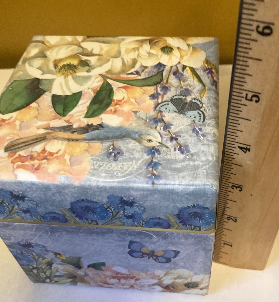 Punch Studio Blue Floral Gift Storage Box Cube Shaped 4"x4" x4"