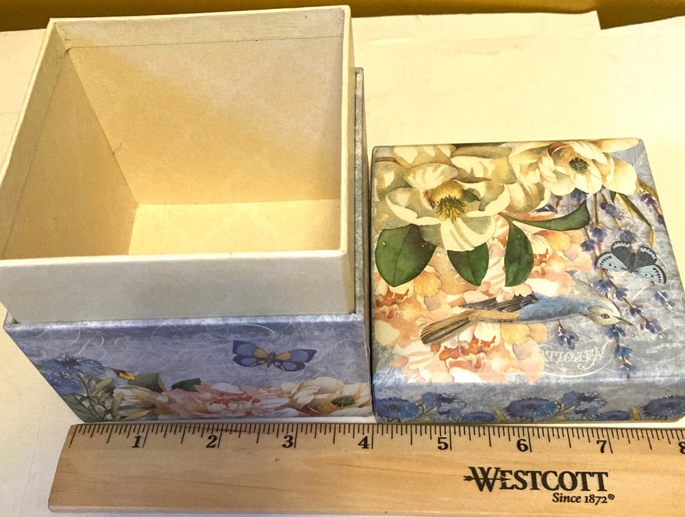 Punch Studio Blue Floral Gift Storage Box Cube Shaped 4"x4" x4"...