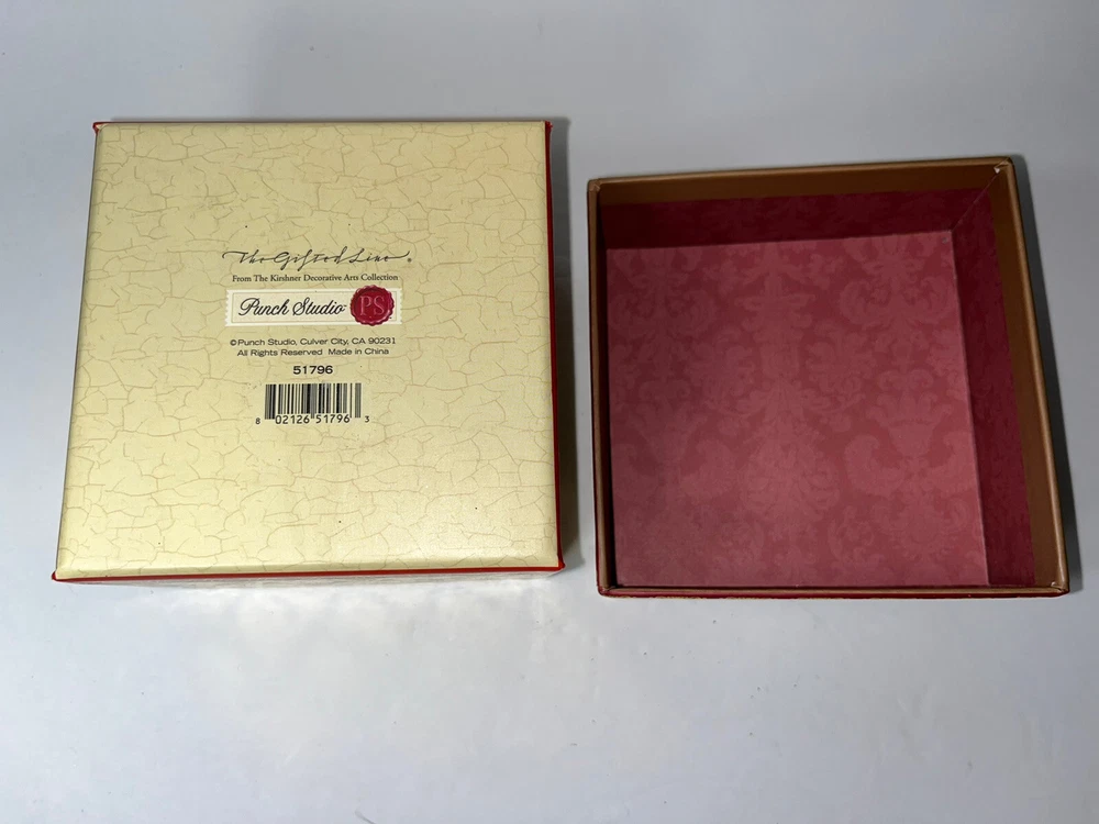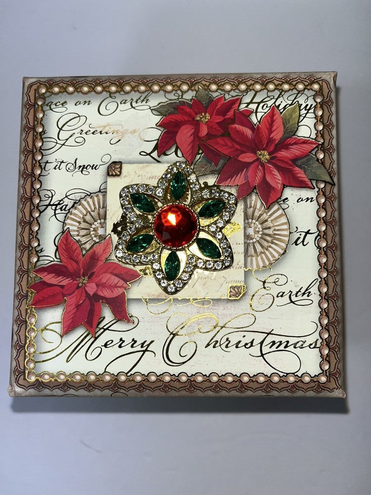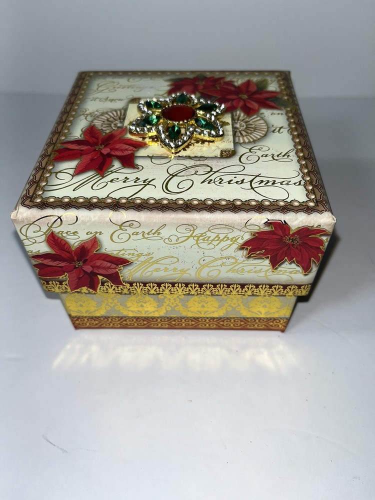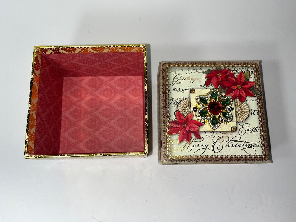 PUNCH STUDIO #51796 Decorative Square Storage Box Beautiful Red Flowers And Rhinestones On Lid Measurements: 4.25" Square X 3" Tall Made Of Cardboard With The Most Beautiful Colorful Covering CONDITION: Excellent If You Have Any Questions Please Ask We Are Always Happy To Assist Thank You For Looking!