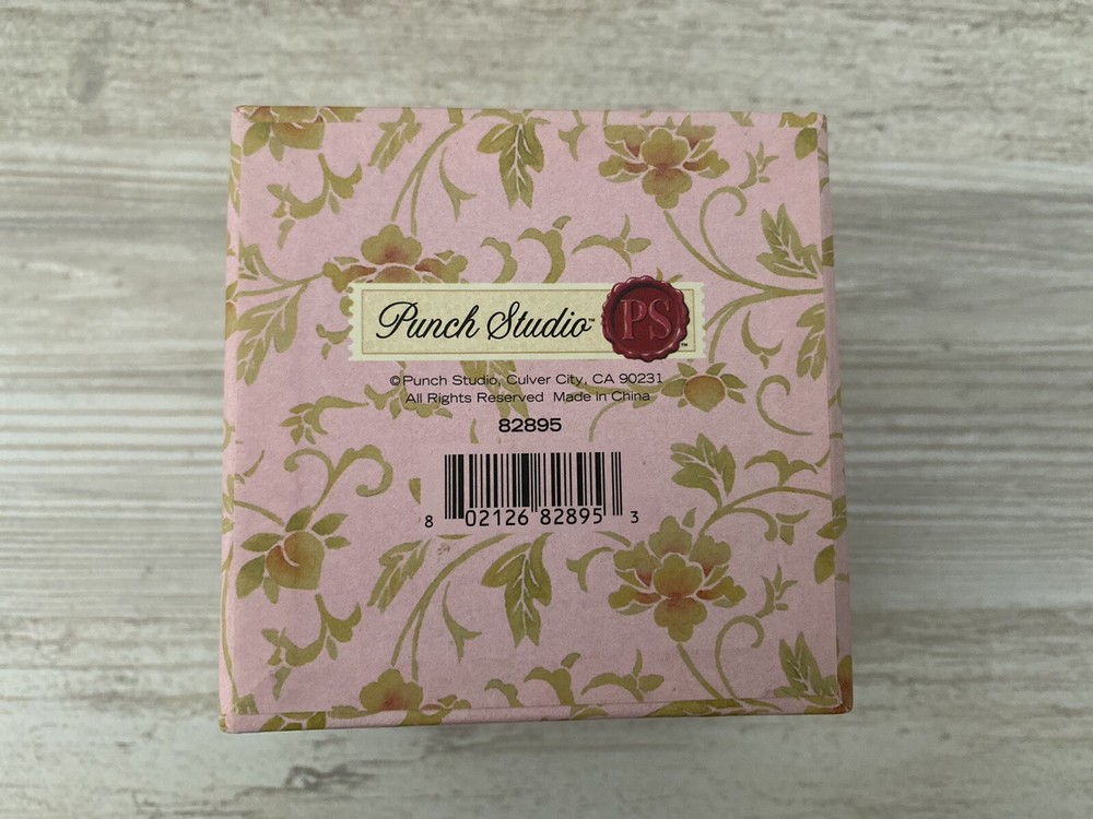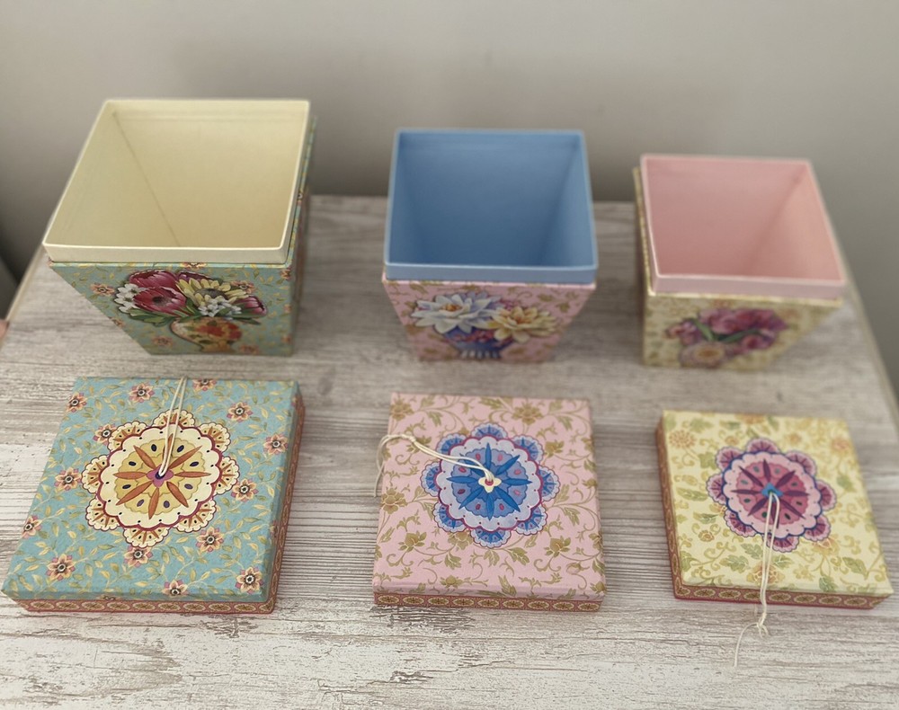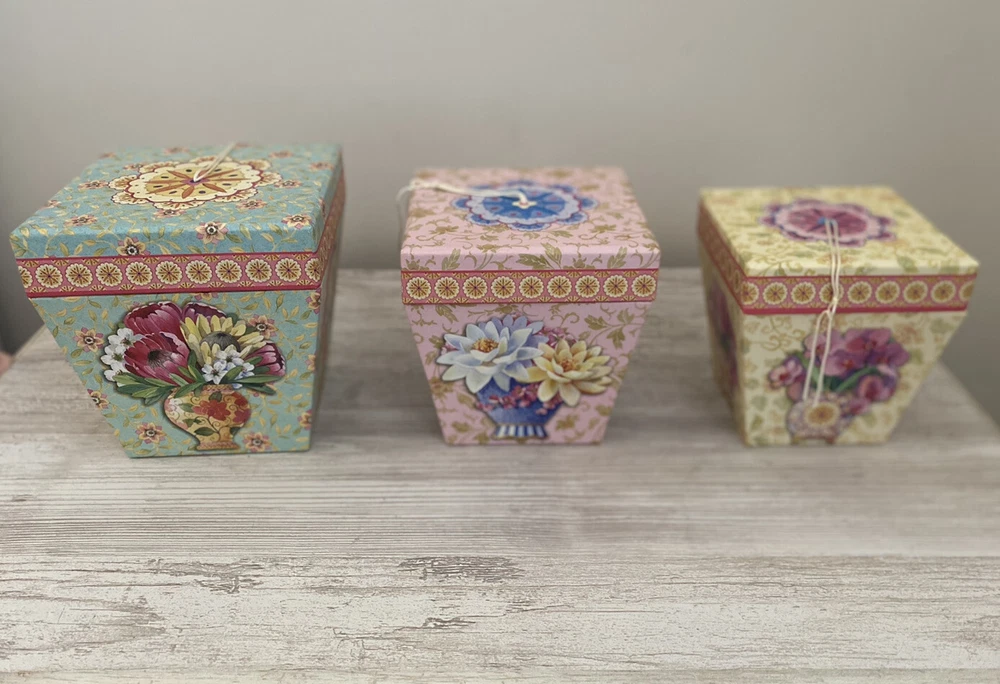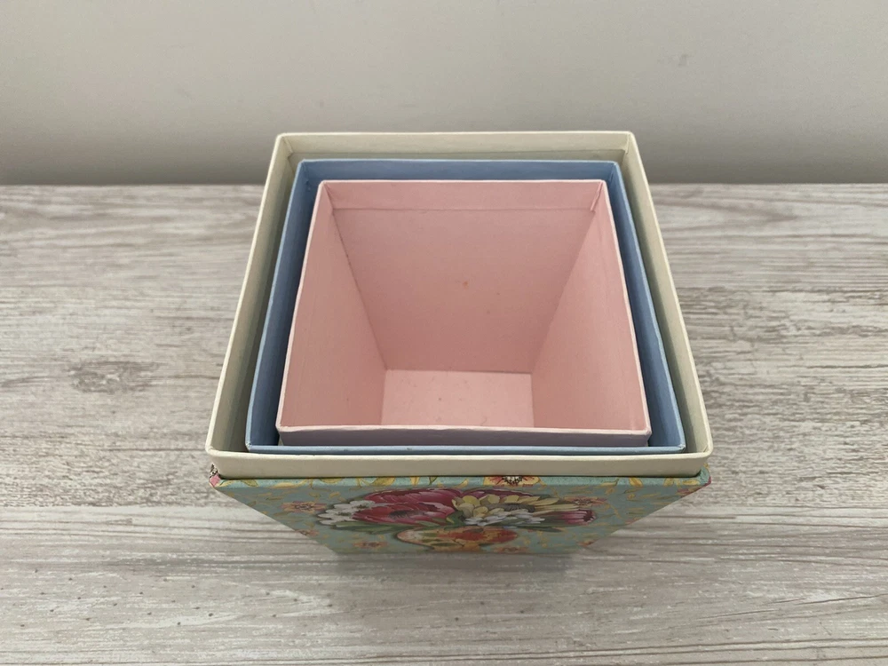 Punch Studio Flowers Theme Embellished Trinket Nesting Stacking Boxes Set of 3 1-st box size 5.5'' x 5.5'' x 5.5'' 2-nd box size 5'' x 5'' x 5'' 3-nd box size 4.5'' x 4.5'' x 4.5''