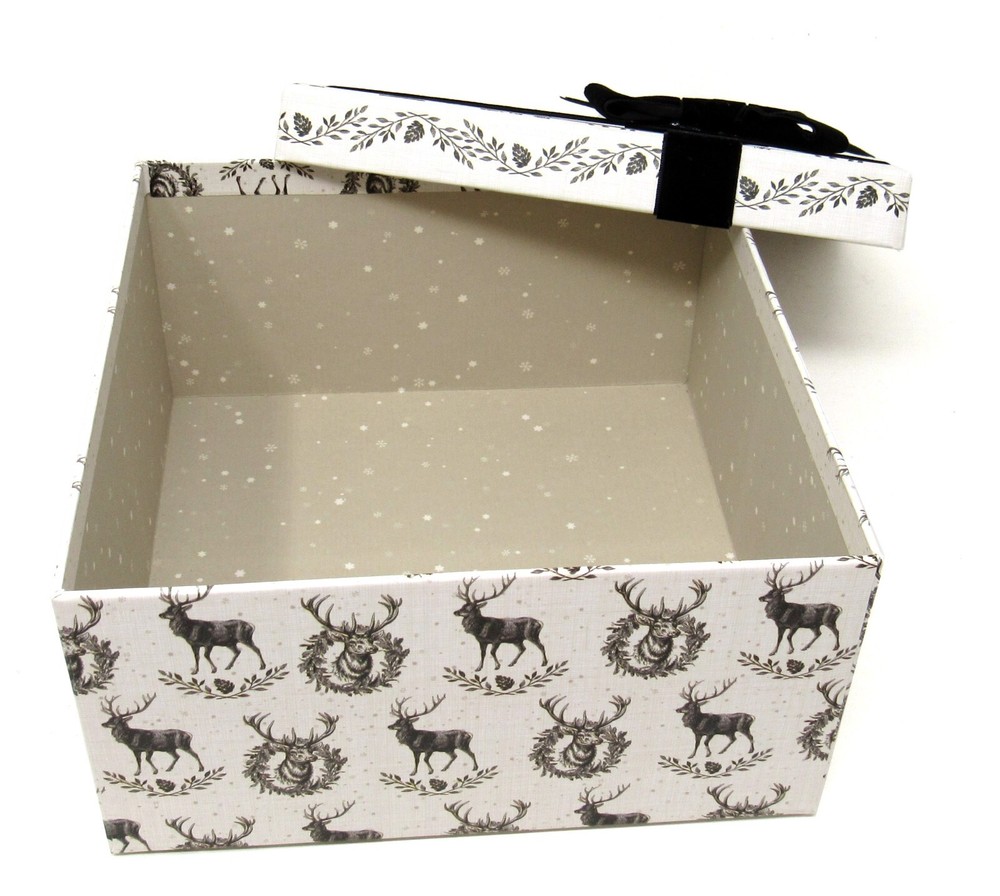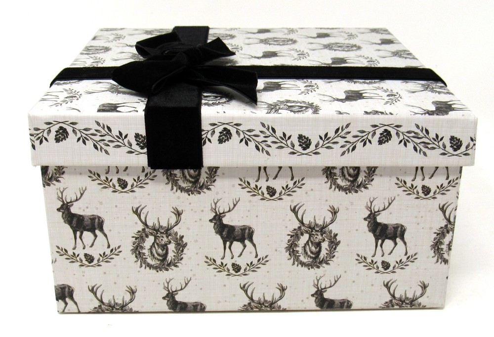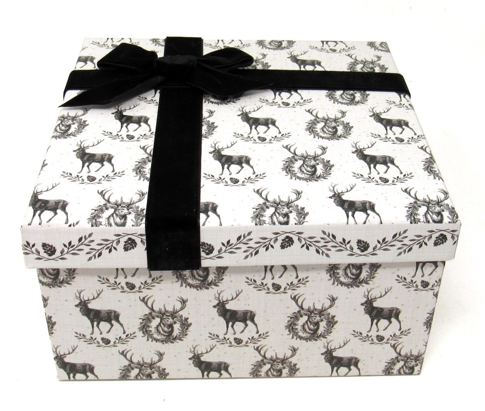 Punch Studio Decorative Nesting Keepsake Box BLACK & WHITE REINDEER A beautiful decorative box embellished with vintage inspired graphics and a black velvet ribbon and bow. Details: Item # Size Measurements 20123 med 7.75" x 7.75" x 4" x 3.75" deep (measurements are estimated and taken from widest points) Due to differences in computer monitor settings actual color of item(s) may differ from what you see on your screen. PLEASE NOTE: If you are interested in more than one of my Punch Studio Box items please contact me with the item/quantity that you're interested in (prior to purchase) and I will do my best to arrange a combined shipping discount (based on package size and weight). All items must be paid at one time (on one invoice) to receive discount. NEW SHIPPING: Item(s) will be shipped via your choice of services indicated herein within 1 day of receipt/clearance of payment, excluding weekends and holidays. *************** INTERNATIONAL BUYERS – PLEASE NOTE: Please see International Shipping Calculator for shipping costs, requirements and restrictions for your location prior to bidding. Import duties, taxes, and charges are not included in the item price or shipping cost. These charges are the buyer's responsibility. Please check with your country's customs office to determine what these additional costs will be prior to bidding or buying. Customs fees are normally charged by the shipping company or collected when you pick the item up. These fees are not additional shipping charges. Customs Forms will be completed with actual costs of item as "value of contents" and will NOT be marked as "gift". *************** RETURNS: I f you are not completely satisfied I will refund the purchase price (less shipping) upon return receipt of item. The following conditions apply: - Item(s) must be in unused and undamaged condition - Any attached tags must NOT be removed - Any certificates must be returned with item - Buyer pays return shipping. - If item is insured, buyer is to help file a claim and, if required, present the damaged package to their local Post Office. - Any insurance claims will be refunded after receipt of claim payment from insurance carrier. *************** All items come from a smoke free home. Although I am careful to be very accurate in my descriptions, please do not hesitate to contact me if you need further information. Your satisfaction is our priority; therefore, if you encounter any problems, please contact us right away so we can resolve any concerns you may have.
