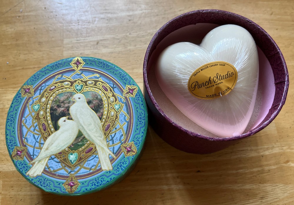Punch Studio LOVE BIRDS Valentine’s Day Milled Jasmine Soap Heart-Shaped 4 Oz. Amazing heart-shaped soap in a decorative love birds round box! What a fabulous VALENTINE’S DAY GIFT! I’m even offering free shipping! Thanks for looking and feel free to message me with any questions!
